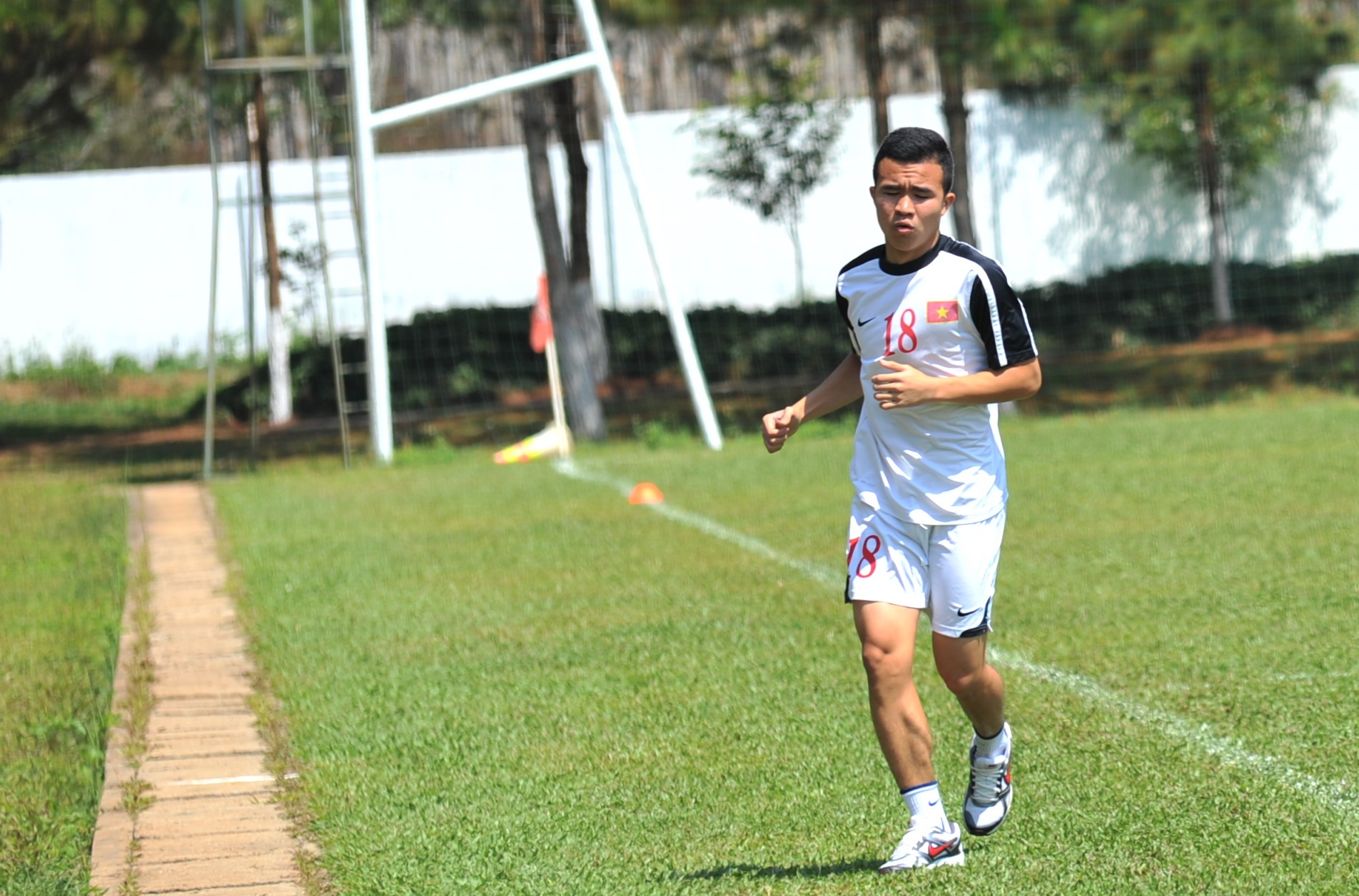 | Thanh Tùng là cầu thủ duy nhất của U19 Việt Nam vẫn đang gặp chấn thương nên chỉ tập chạy nhẹ để hồi phục. |