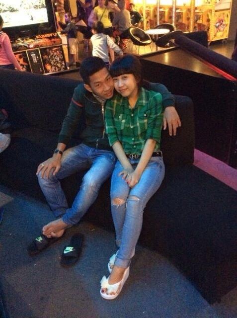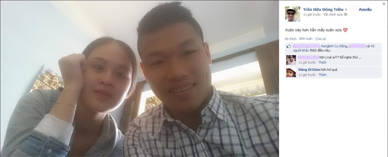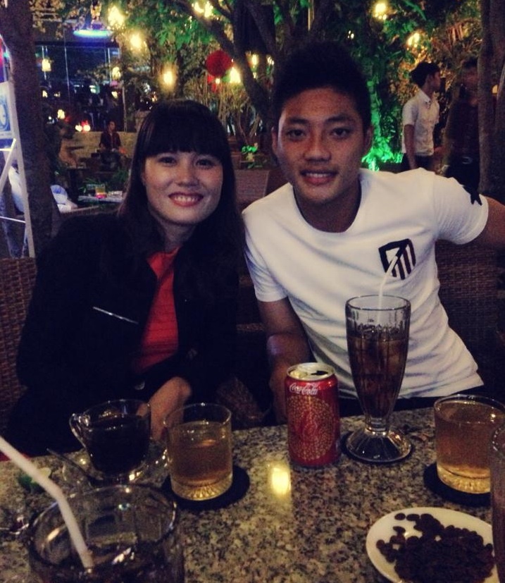 | Trung vệ Đông Triều sánh đôi bên bạn gái xinh đẹp. Bạn gái tên Linh của Đông Triều đang theo học tại ĐH Duy Tân, Đà Nẵng. |