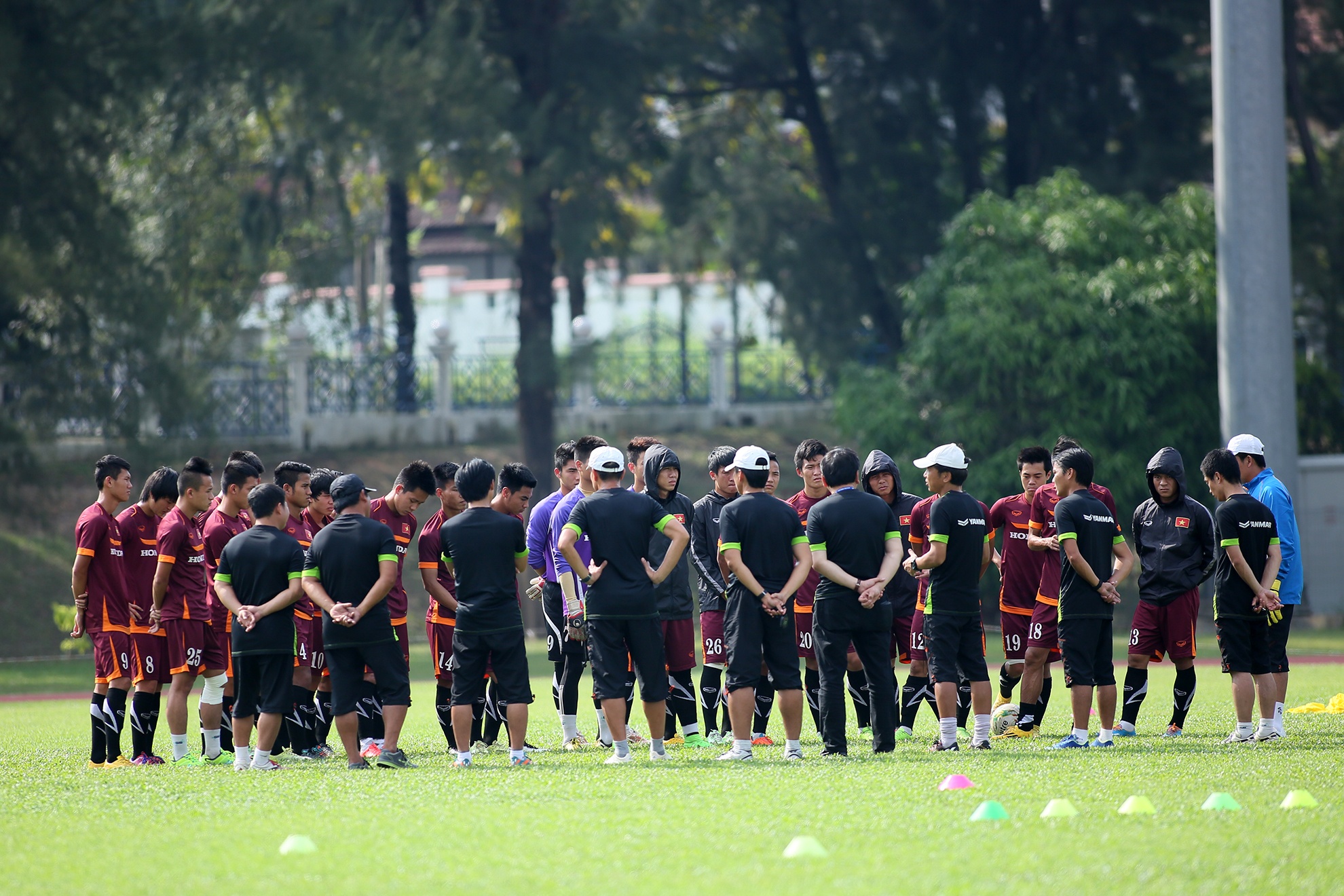 | Do vừa trải qua trận cầu căng thẳng với Malaysia, nên HLV Miura chỉ cho các cầu thủ đá chính tập nhẹ với các bài đi bộ, chạy thả lỏng, riêng các cầu thủ dự bị phải tập luyện nhiều hơn với bài tập nhóm, đối kháng và dứt điểm. |