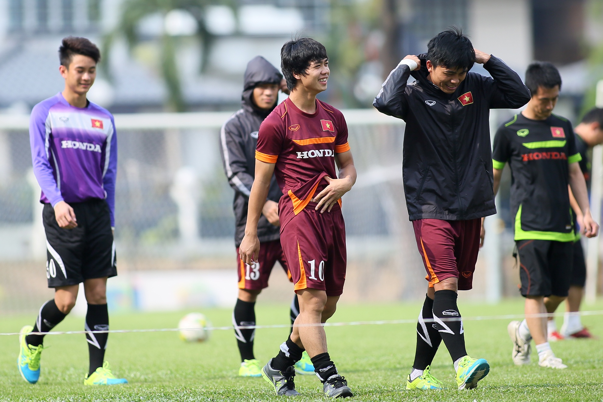 Các cầu thủ Việt Nam tỏ ra khá vui vẻ trong buổi tập nhẹ hôm nay. Sau chiến thắng trước Malaysia, thầy trò HLV Miura tràn đầy tự tin trước trận đấu gặp Nhật Bản.