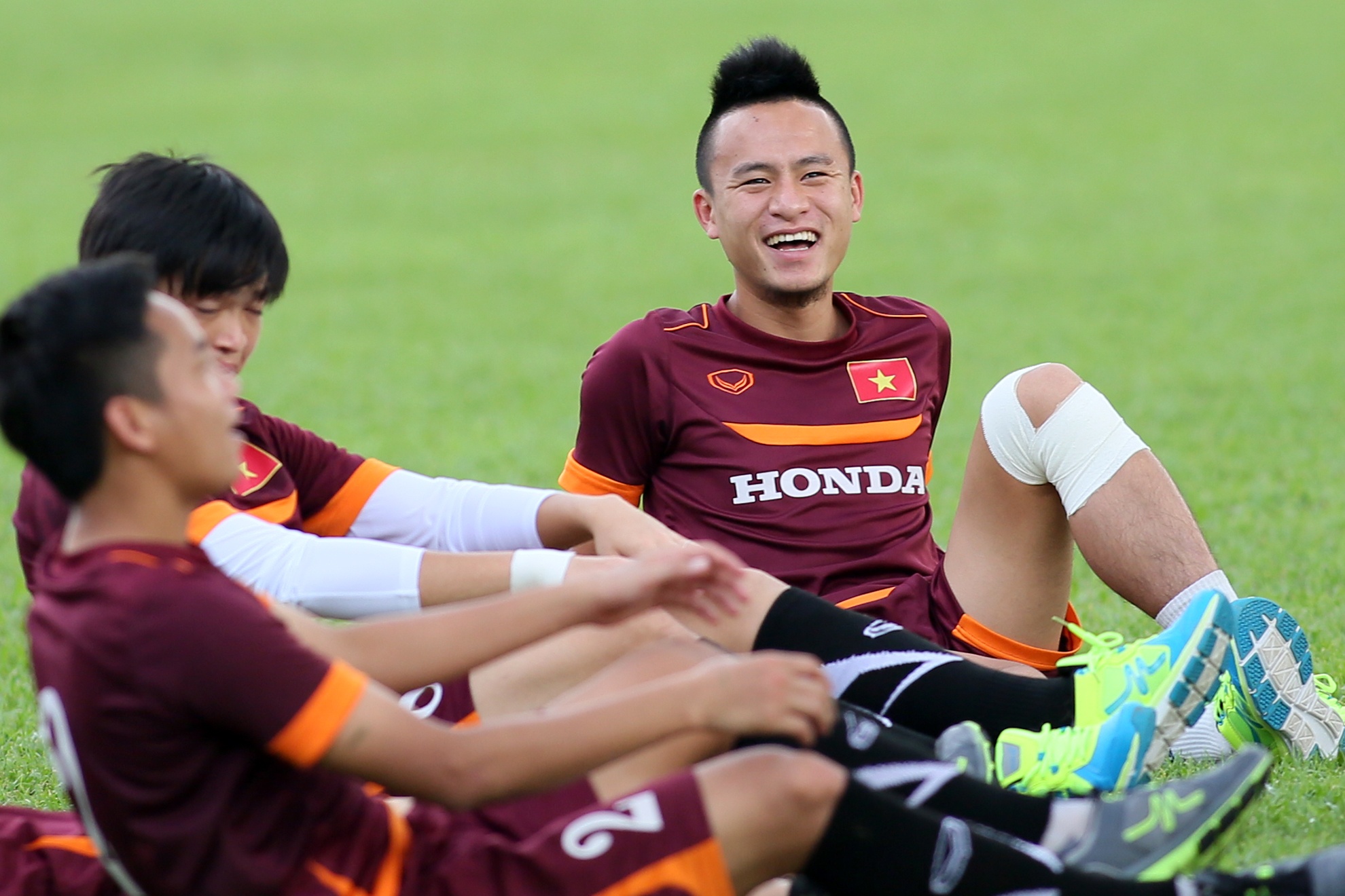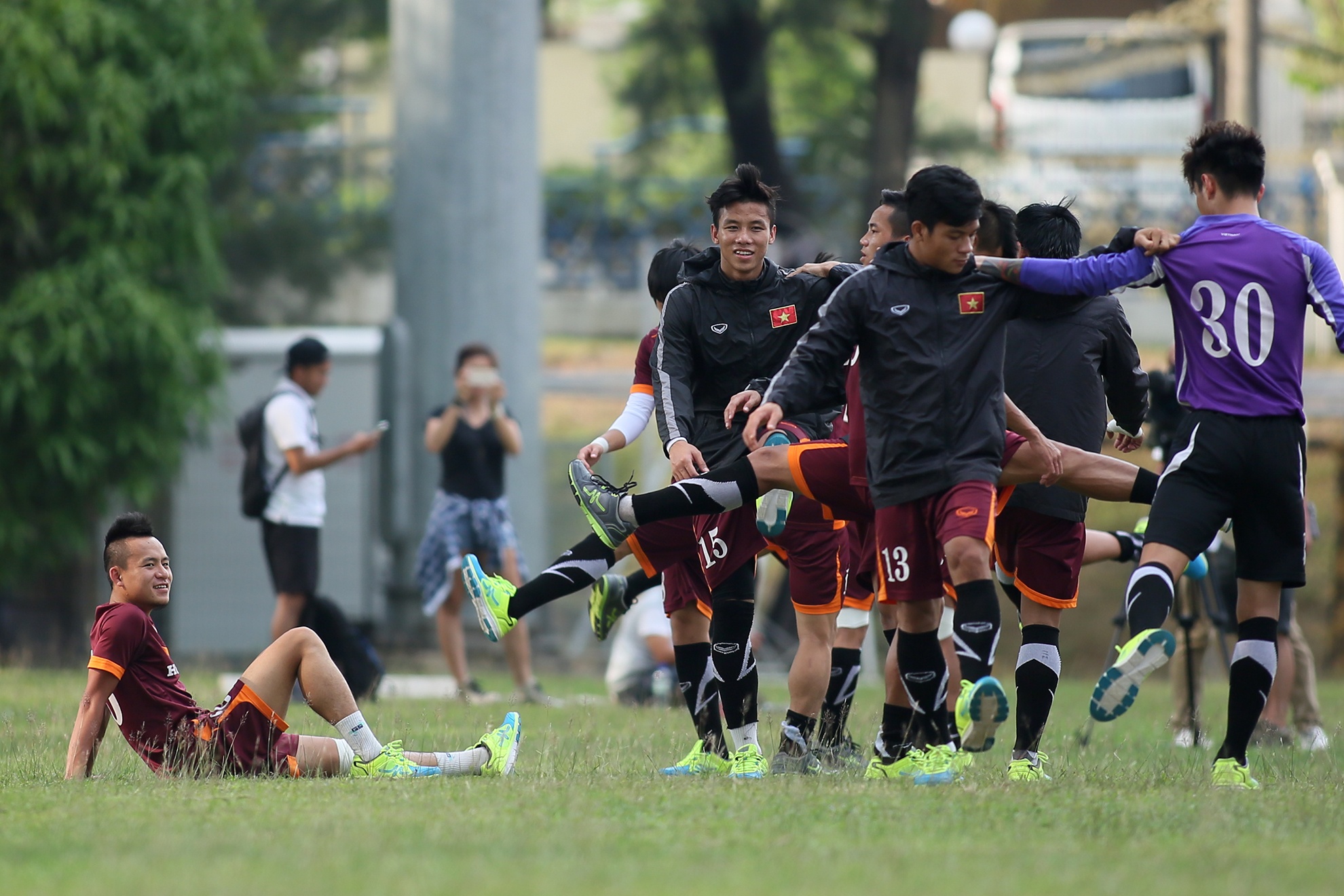| Nụ cười liên tục xuất hiện trên khuôn mặt các cầu thủ U23 dù sắp phải gặp đối thủ rất mạnh là U23 Nhật Bản. Tuy nhiên khả năng ra sân của Huy Toàn đã gần như không còn khi anh gặp chấn thương khá nặng ở đầu gối. |