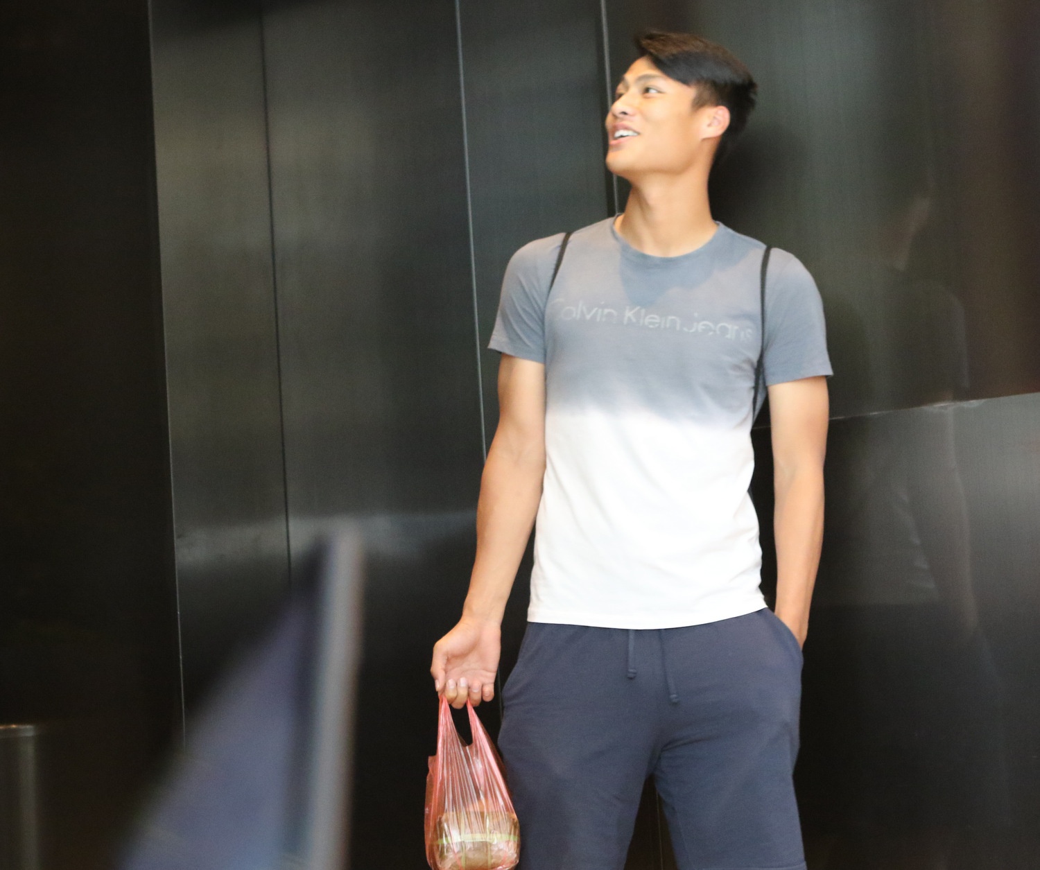 | Phi Sơn khoe đôi giày mới mua tại sảnh khách sạn Days. |