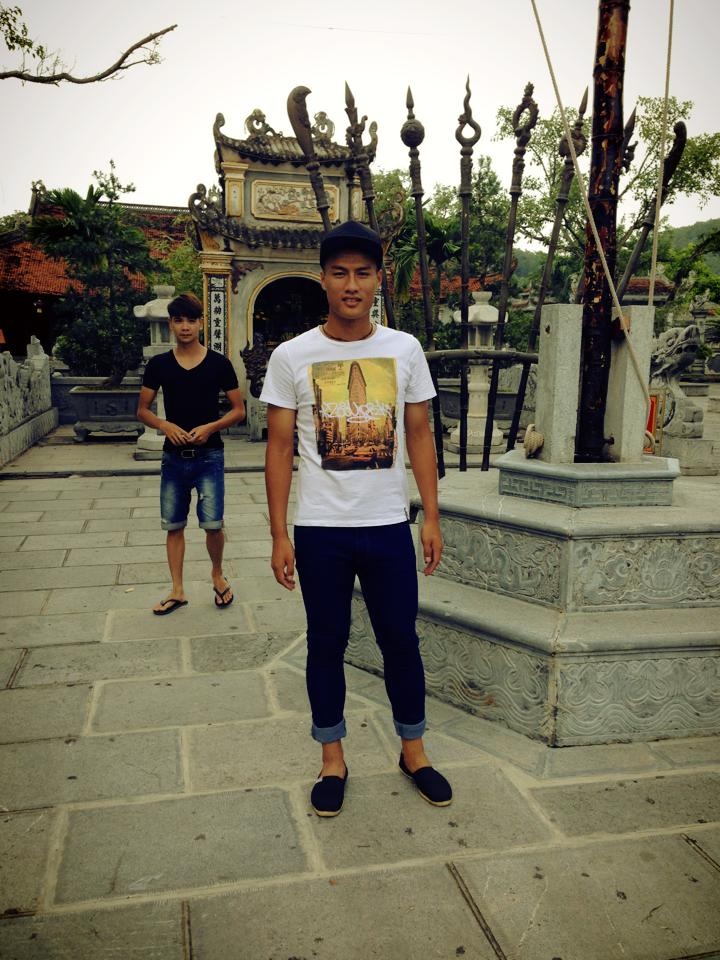 | Mạc Hồng Quân ăn mặc đơn giản đi lễ chùa. |