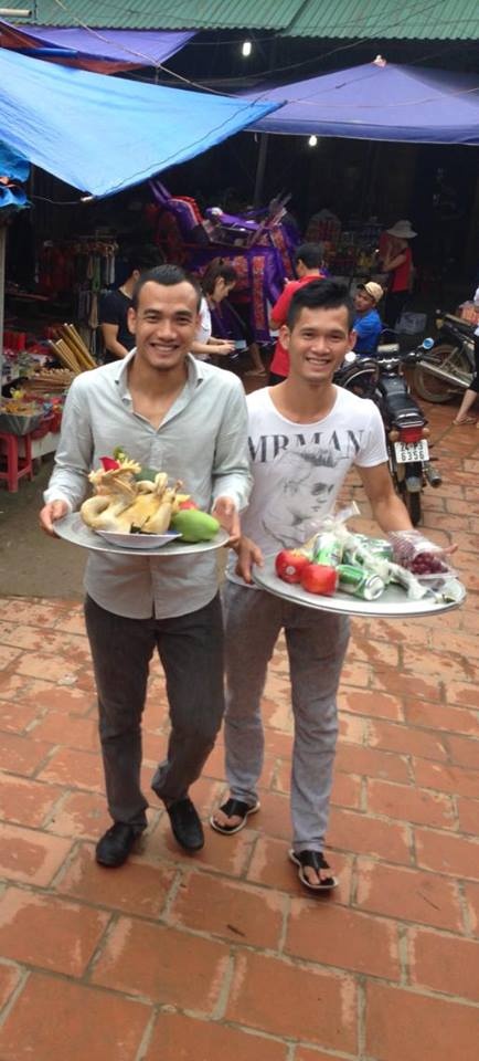 | Cầu thủ Nguyễn Đại Đồng (trái) chia sẻ: "Lễ xong là thấy nhẹ lòng". |
