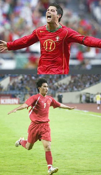 Phi Sơn còn chịu ảnh hưởng của siêu sao người Bồ Đào Nha ở cách ăn mừng chiến thắng có phần lạnh lùng, khệnh khạng.