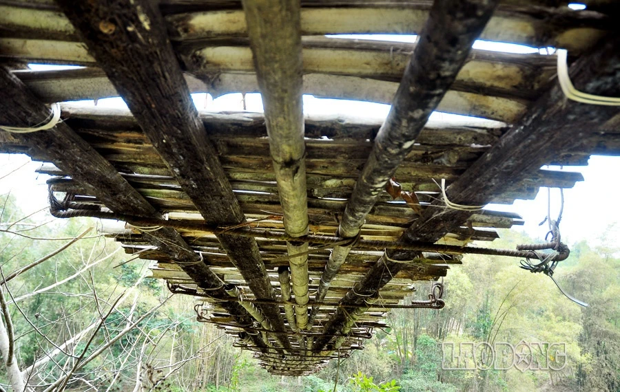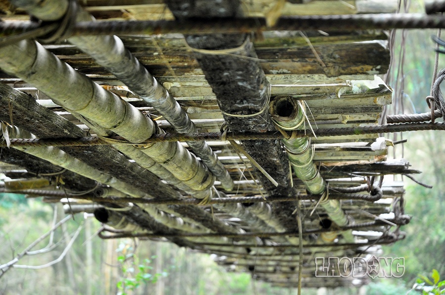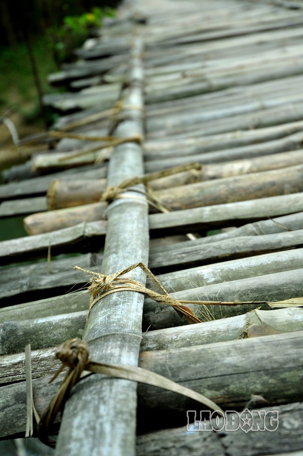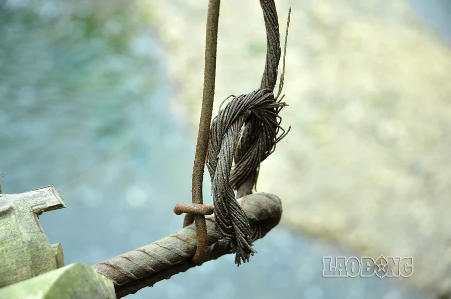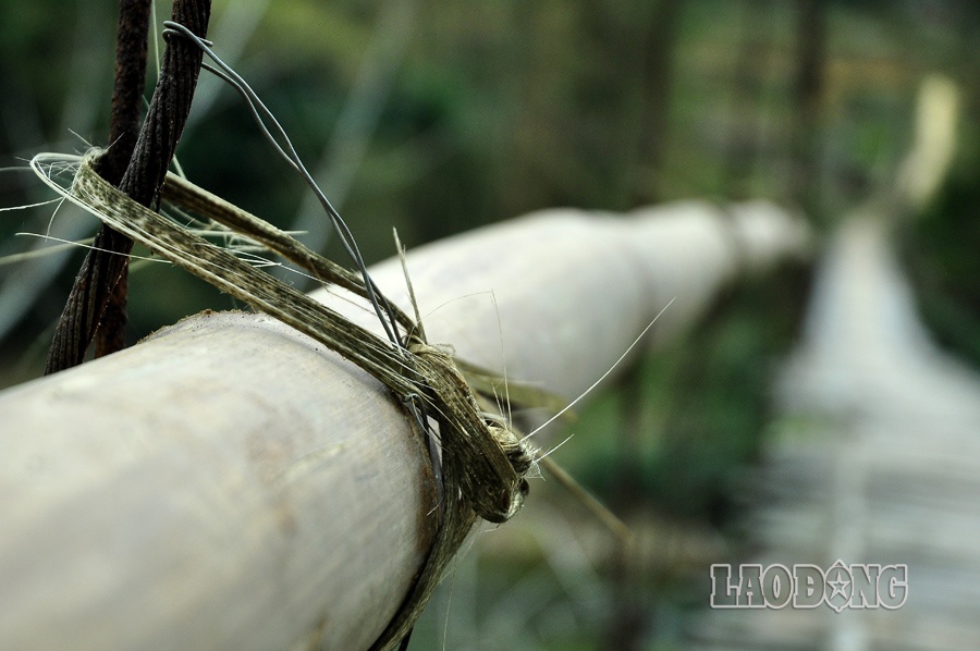 | Cũng bởi vì sợ nước lũ lên cao cuốn trôi mất nên chiếc cầu treo của anh Lãm được buộc bằng những chiếc lạt để thuận lợi cho việc tháo gỡ nhanh chóng. |