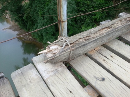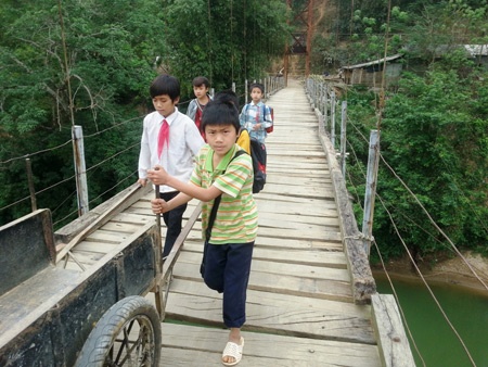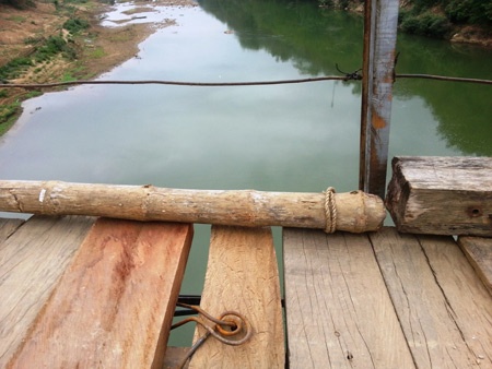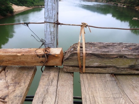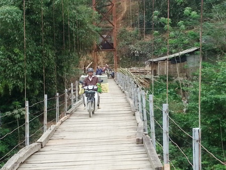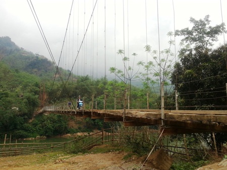 | Cầu treo bản Pan, xã Phú Xuân, huyện vùng cao, biên giới Quan Hóa (Thanh Hóa) bắc qua sông Mã, nối quốc lộ 15A qua các bản Mí, Phé và Bá (xã Phú Xuân), đang xuống cấp khá nghiêm trọng. Người dân dùng các loại dây thun, thừng… để neo những thanh gỗ làm lan can cầu. |