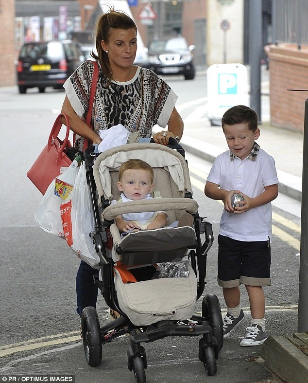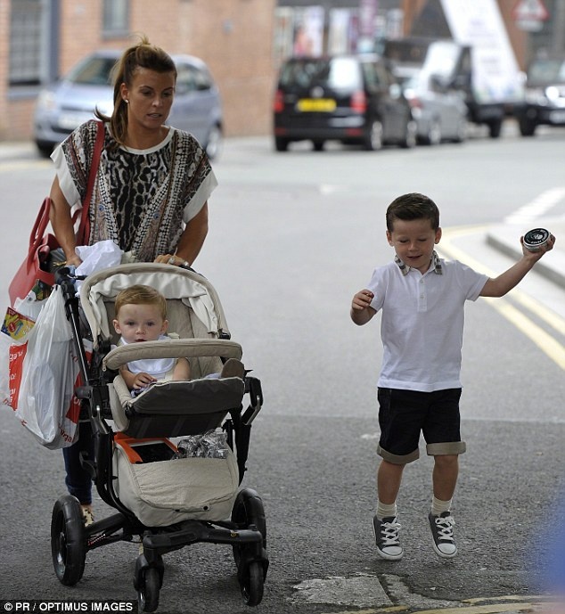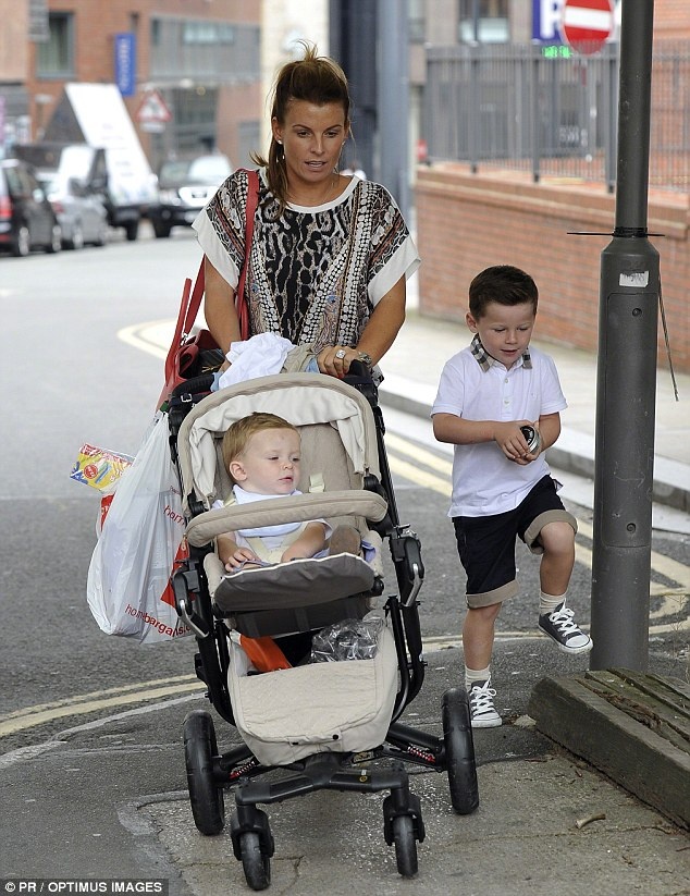 Trong khi Wayne Rooney đang miệt mài luyện tập cùng Quỷ đỏ thì bà xã Coleen lại đang thong dong dạo phố cùng 2 con trai tại Liverpool.