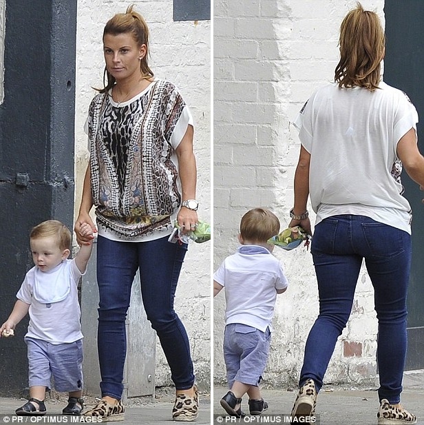 Bà mẹ hai con giản dị với áo voan, quần jean, giày lười. Thông thường, Coleen thường chọn trang phục khá giản tiện và rộng rãi để dễ bề chăm sóc các con. Tuy nhiên, trang phục này lại vô tình để lộ vóc dáng không mấy thon gọn cùng chiều cao khiêm tốn của Coleen.