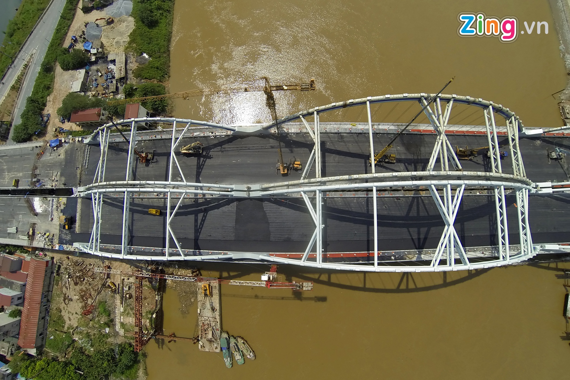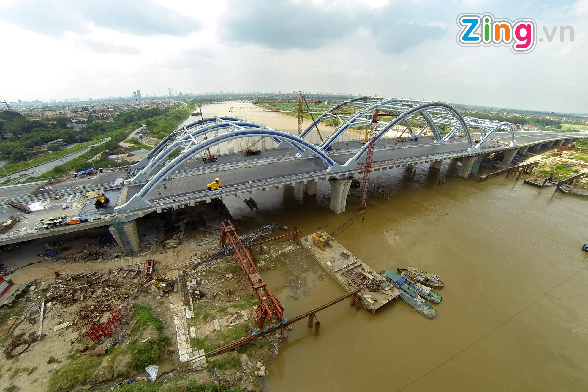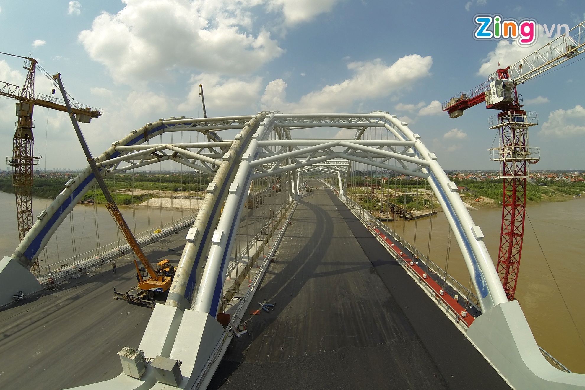 Vòm thép nặng 3.000 tấn được níu bởi 94 dầm ngang và 176 dầm dọc cùng cả nghìn tấn bê tông nhồi bên trong. Cây cầu trị giá hơn 6.000 tỷ đồng dự kiến khánh thành dịp 10/10.