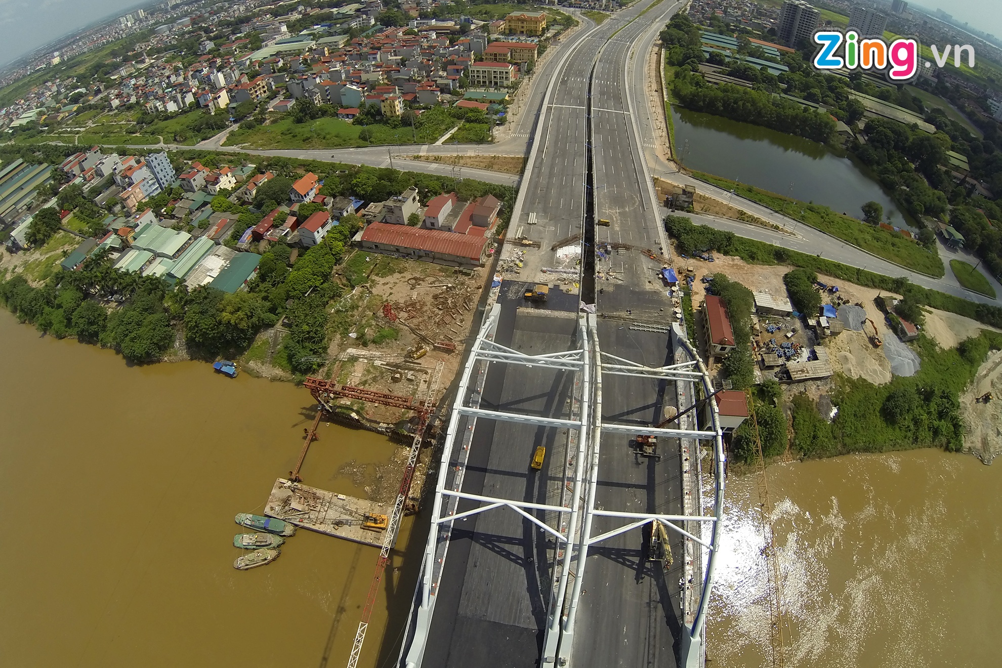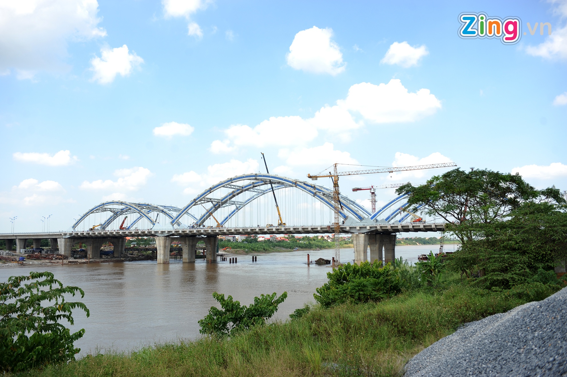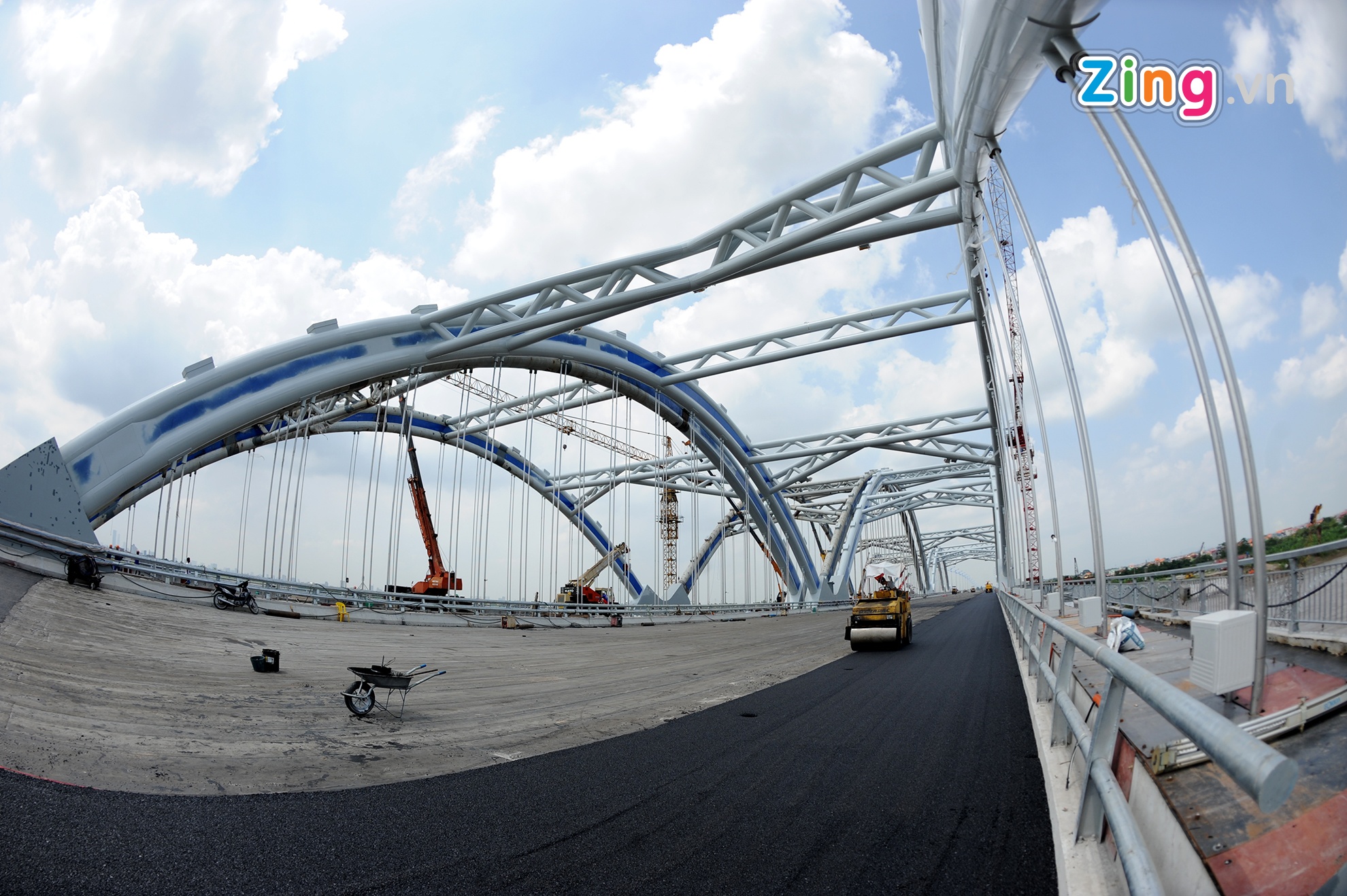 Vòm thép nặng 3.000 tấn được níu bởi 94 dầm ngang và 176 dầm dọc cùng cả nghìn tấn bê tông nhồi bên trong. Cây cầu trị giá hơn 6.000 tỷ đồng dự kiến khánh thành dịp 10/10.