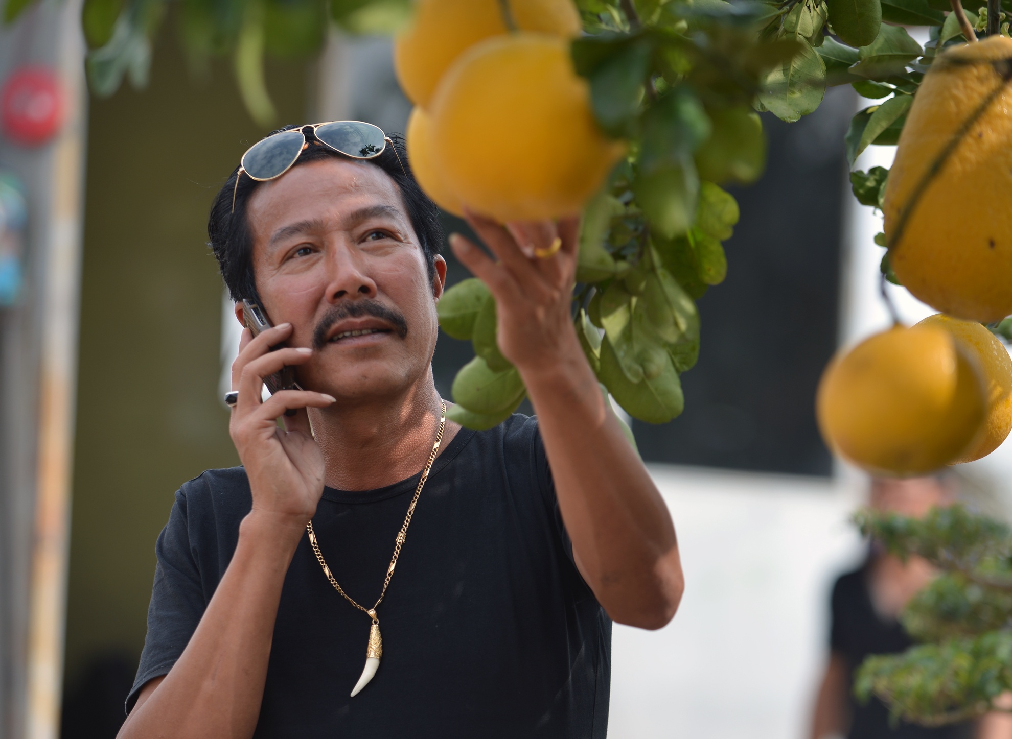 | Ông Nguyễn Gia Hiền, Phó chủ tịch Hội cây cảnh nghệ thuật Hà Nội cũng tới chiêm ngưỡng cây bưởi cảnh đặc biệt này. Ông bình phẩm: "Chậu bưởi hội tụ tất cả yếu tố thẩm mỹ cũng như nghệ thuật của một cây cảnh đẹp. Với những nét đẹp tự nhiên về số lượng quả, hoa, lộc và bộ rễ lâu năm, cây này có thể coi là quý, hiếm trên thị trường hiện nay". |