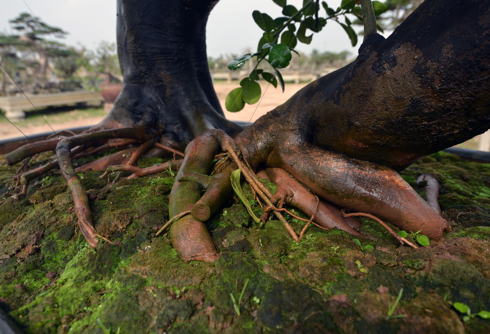 Ngoài 68 quả chín vàng với ý nghĩa lộc phát, cây còn đặc biệt bởi bộ rễ xù xì, đâm ngang và trồi lên khỏi mặt đất. Theo một số người chơi cảnh lâu năm, cây có tuổi đời khoảng 70-80 năm và hơn 10 năm trồng trong chậu.