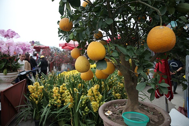 | Cây bưởi cảnh này được người bán tại chợ Quảng Bá chào giá 13 triệu đồng. |