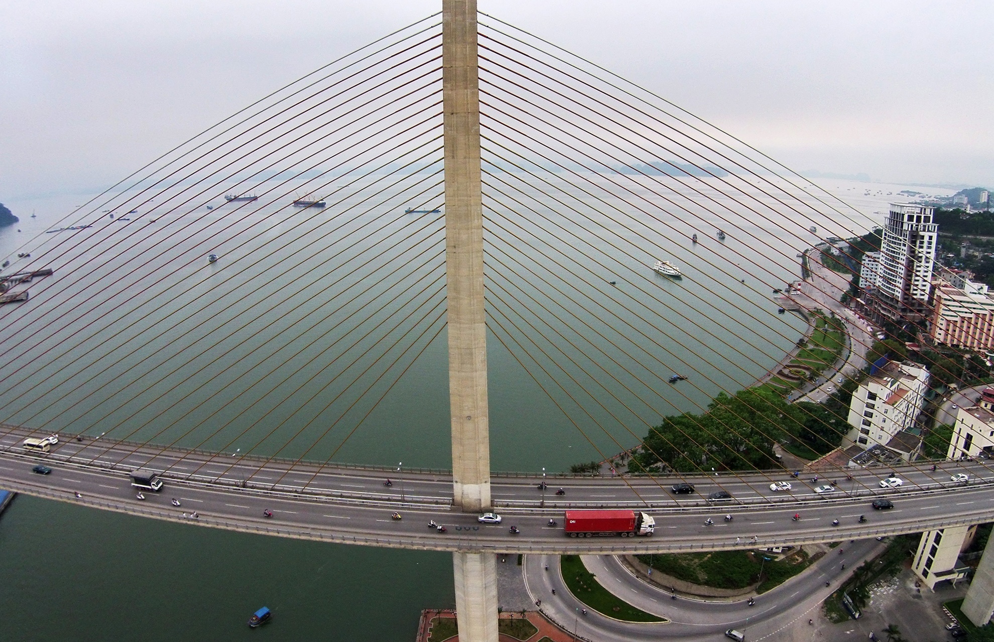 Sau gần 8 năm khánh thành và đưa vào sử dụng, cầu Bãi Cháy (Hạ Long, Quảng Ninh) vẫn là một trong những cây cầu dây văng dự ứng lực một mặt phẳng dây lớn nhất thế giới.
