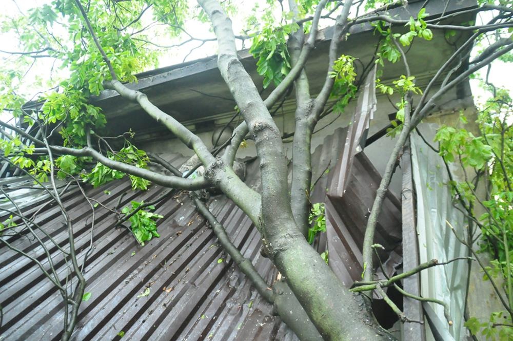 Cây đổ sập ban công nhà dân sau trận mưa lớn