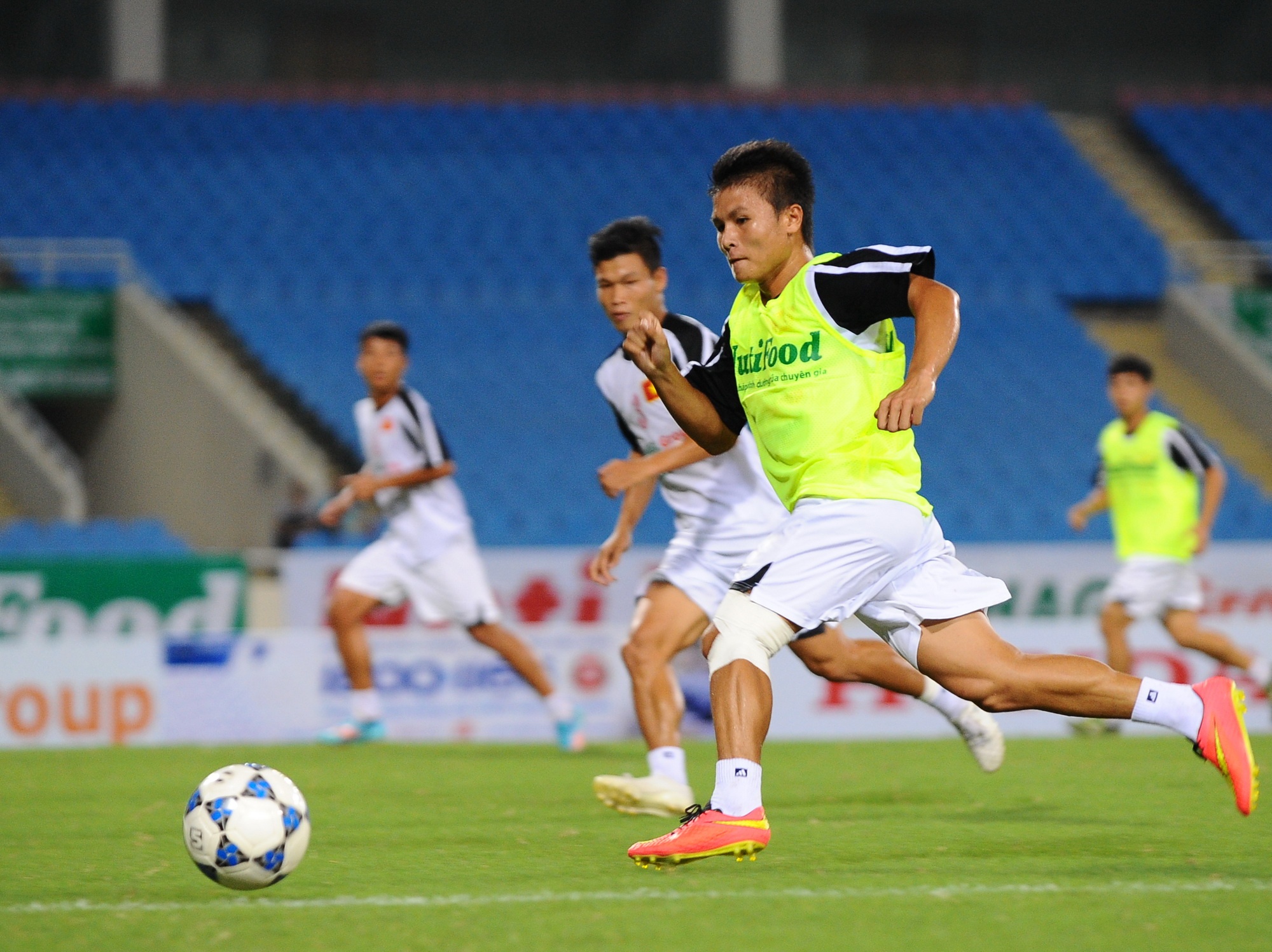| Tiền vệ trẻ Quang Hải cho biết: "Em vẫn còn đau nhẹ ở đầu gối trái, những vẫn cố gắng nỗ lực tập luyện hết mình để giữ suất đá chính trong đội hình U19 Việt Nam". |