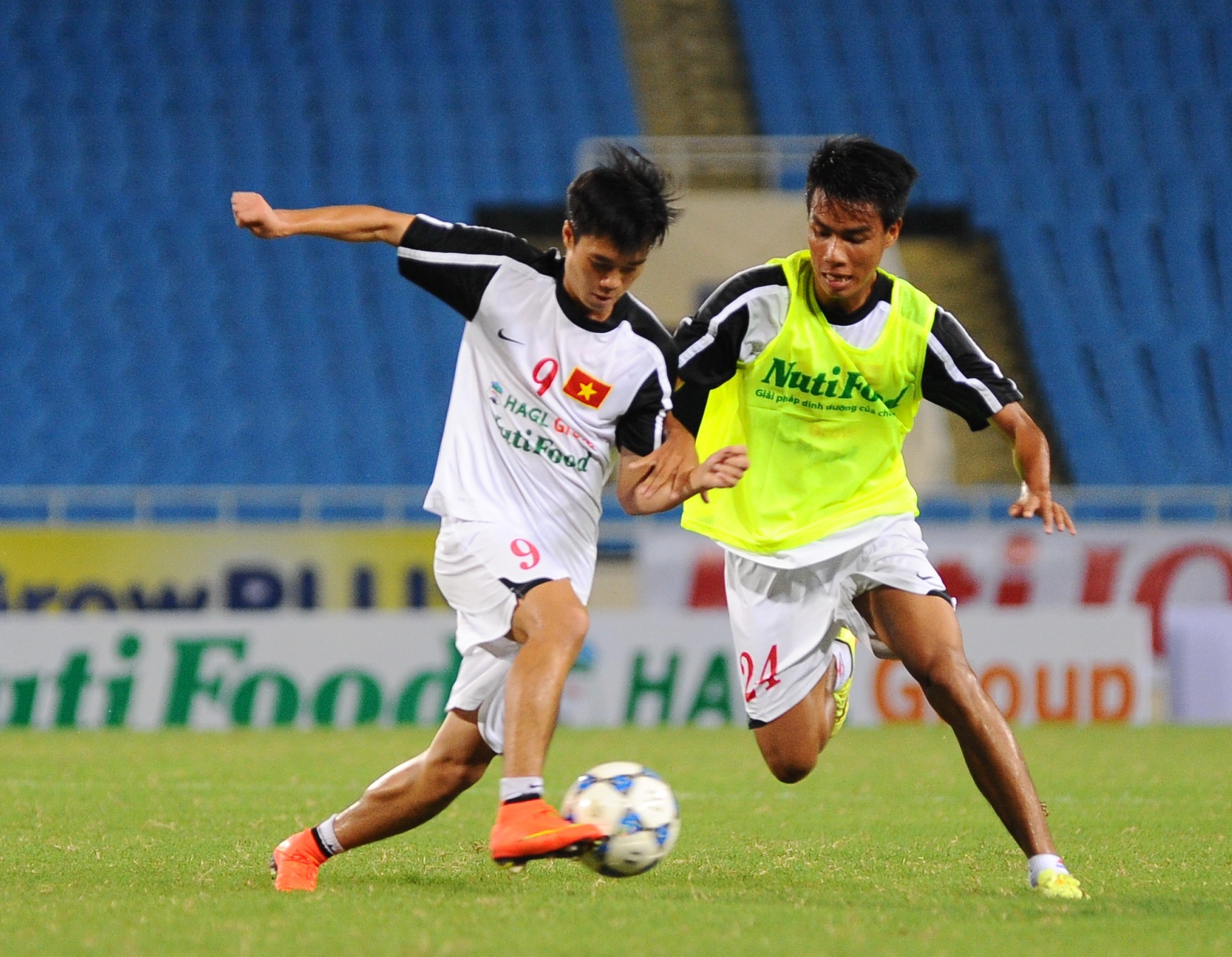 | Văn Toàn (số 9) cũng thể hiện khát khao muốn tìm lại xuất đá chính trên hàng công của ĐT U19 Việt Nam ở giải U19 Đông Nam Á 2014 này. |