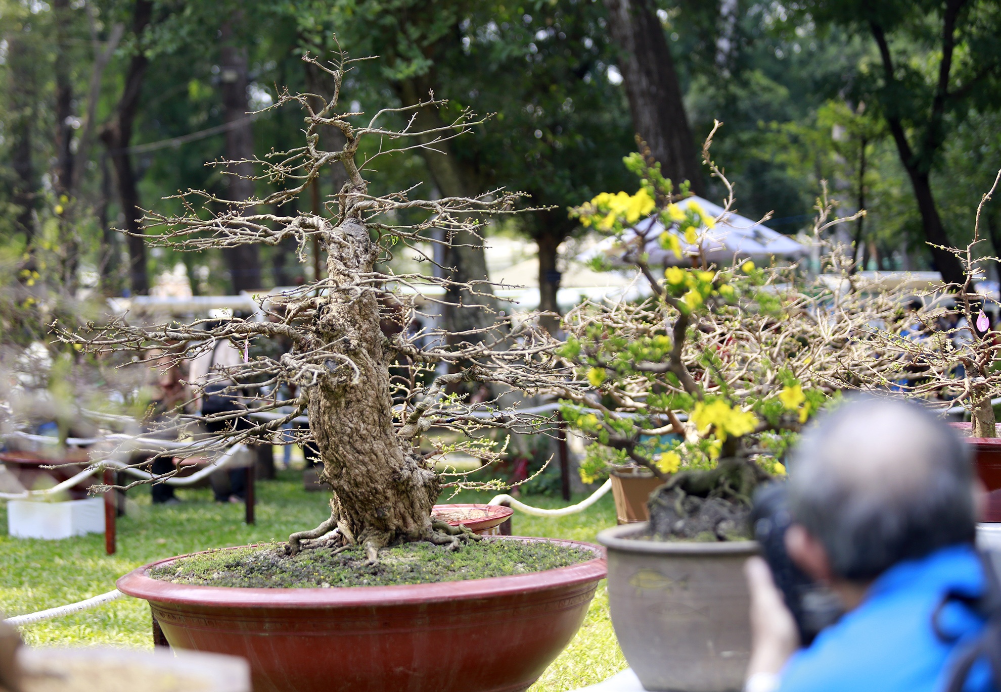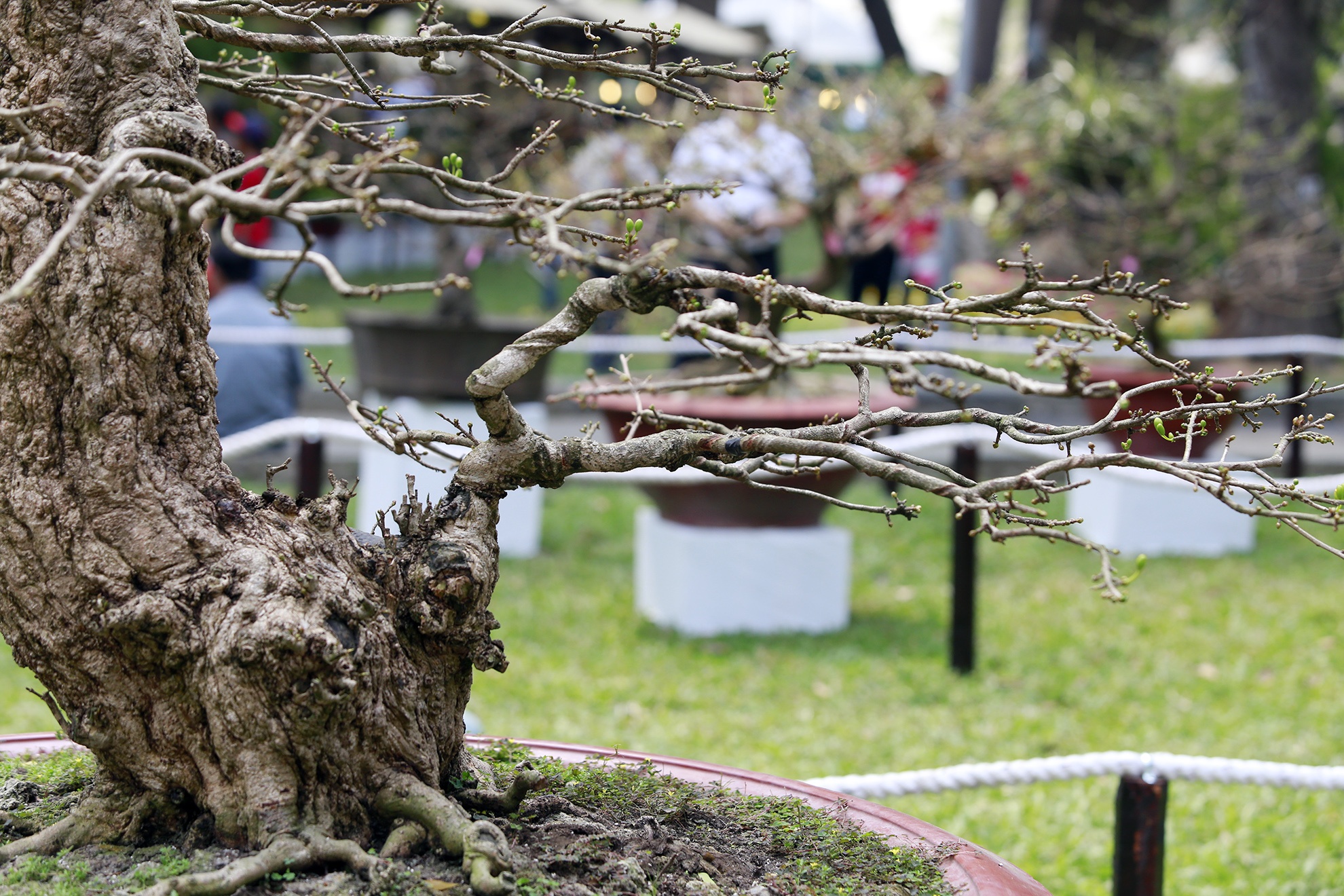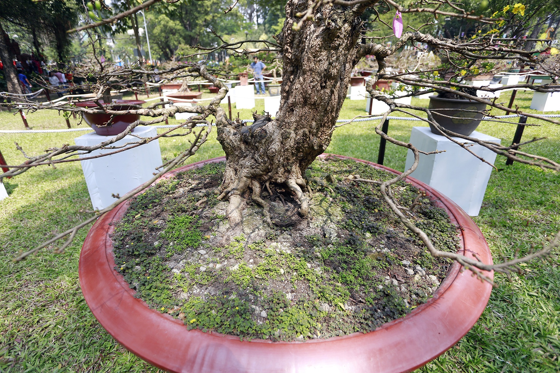 | Cây mai gốc to xù xì này được anh Chín Lớn (Châu Thành, Đồng Tháp) định giá 2,5 tỷ đồng tại Hội hoa xuân công viên Tao Đàn, TP.HCM. |