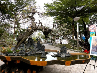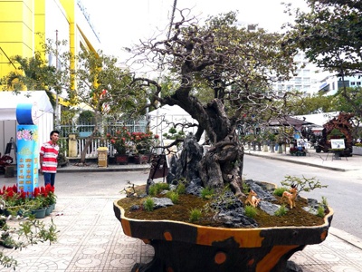 Tại Hội hoa xuân Giáp Ngọ TP. Nha Trang đang diễn ra, vườn cảnh Hai Tỉnh (phường Ninh Đa, thị xã Ninh Hòa, Khánh Hòa) đưa đến một cây me cổ thụ, và người chủ chỉ bán với giá đắt.