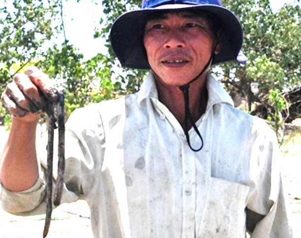 Trung bình một ngày anh Nguyễn Ngọc Hơn (quê Bình Định) bắt được 10 kg giun biển.