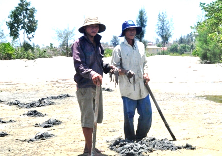 | Đội quân săn lùng giun biển từ Bình Định, Quảng Ngãi… đổ về các bãi biển, bãi ven đầm phá ở các huyện Quảng Điền, Phú Vang, Phú Lộc của tỉnh Thừa Thiên - Huế để khai thác địa sâm. |