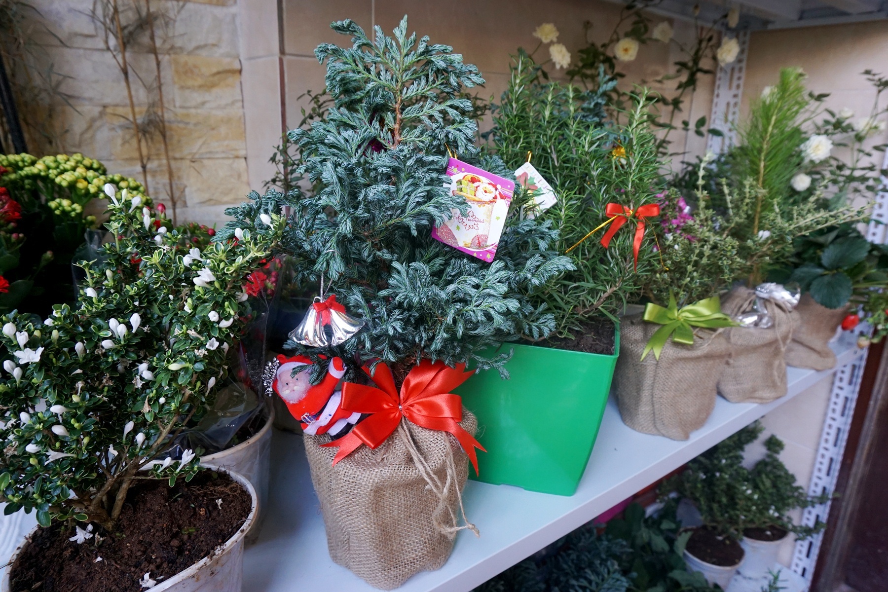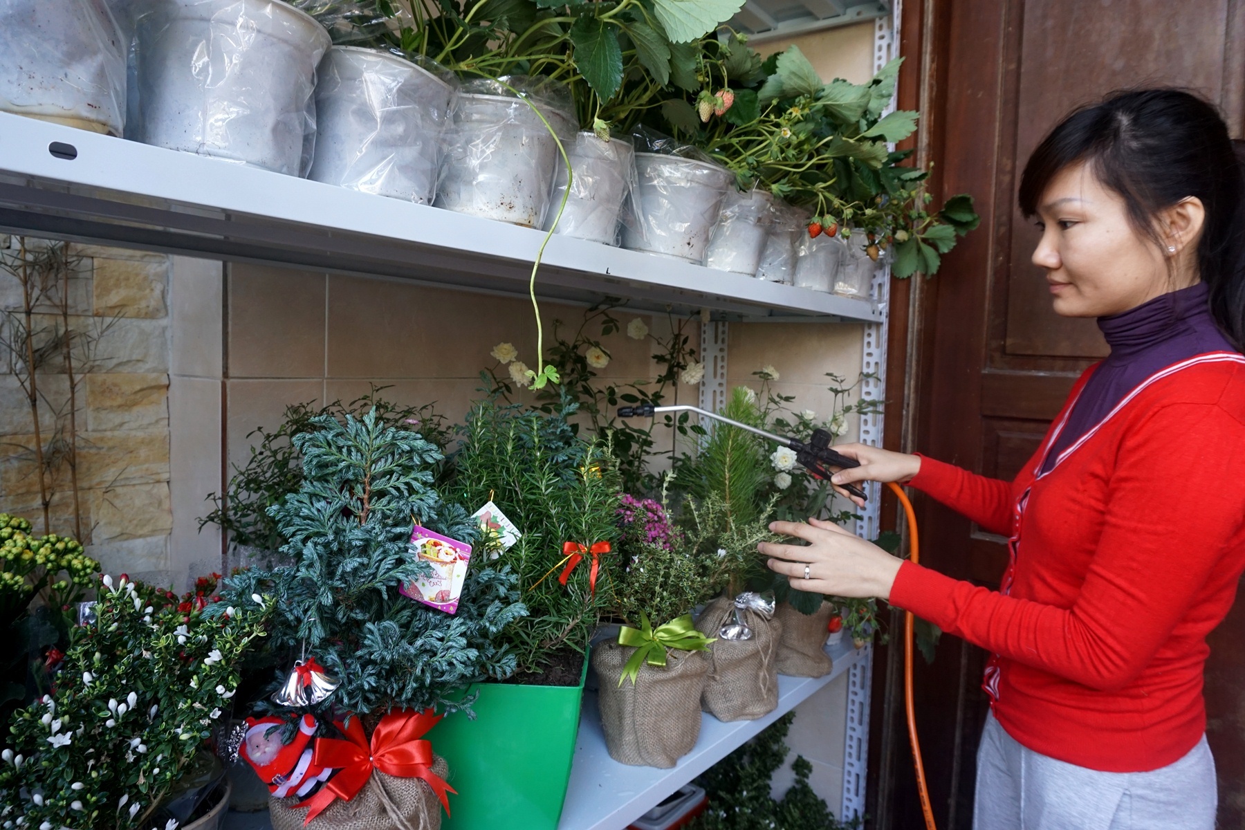 Trong ảnh là shop cây Noel của chị Vân Hương (Trần Khát Chân, Hoàn Kiếm, Hà Nội). Chị Hương là một chuyên viên nhân sự, yêu thích trồng cây và có kinh nghiệm trồng cây lâu năm tại nhà trên phố. Hai năm nay, tranh thủ mùa Giáng sinh, lễ, Tết đến gần, chị Hương thường nhập thêm các loại cây thích hợp trong những ngày này để bán và chia sẻ niềm đam mê của mình với số đông.