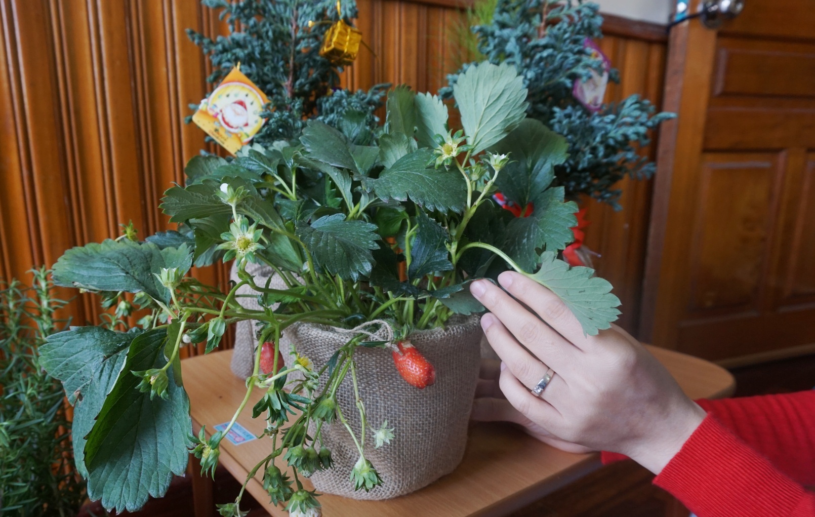 | Cây dâu tây Nhật thân cứng hơn dâu tây nội địa, ra quả sai đúng dịp Noel có giá bán 180.000 - 200.000 đồng/cây, được nhiều khách hàng trẻ mua tặng người yêu, bạn thân. |
