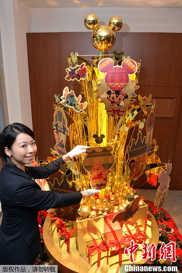 100 tỷ đồng). Cây thông Noel bằng vàng ròng này được trang trí bằng những nhân vật hoạt hình nổi tiếng. Dưới chân cây thông cũng đặt những gói quà vàng và được đặt ngay tại lối vào, thu hút sự chú ý của rất nhiều người.Cây thông này sẽ được trưng bày tại cửa hàng đến hết ngày 25 tháng 12.