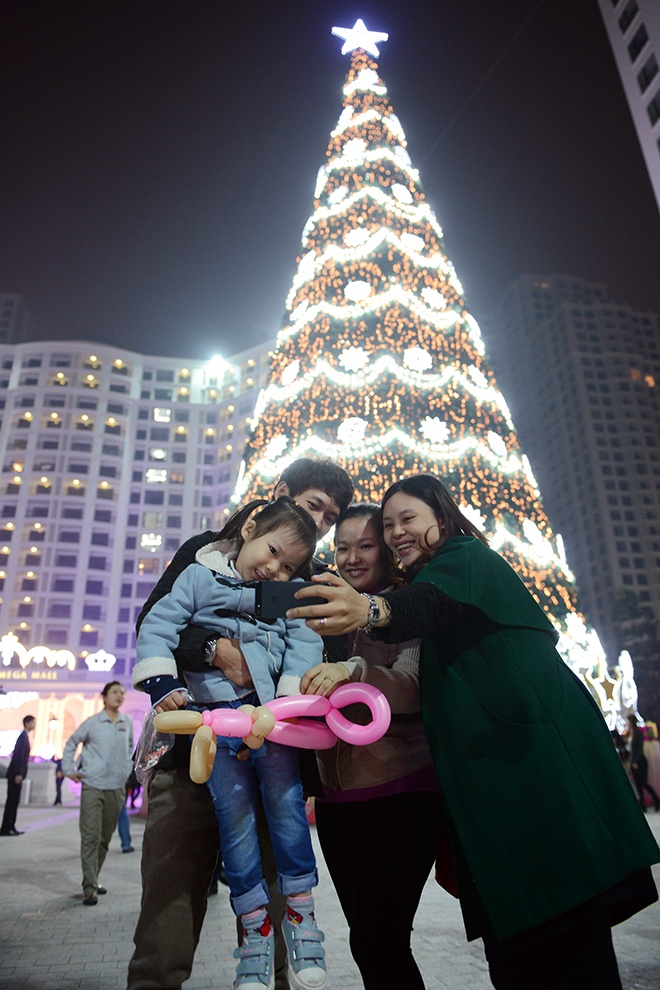 | Trong tối qua, rất nhiều người dân đến đây chụp hình kỷ niệm cùng cây thông đặc biệt. |