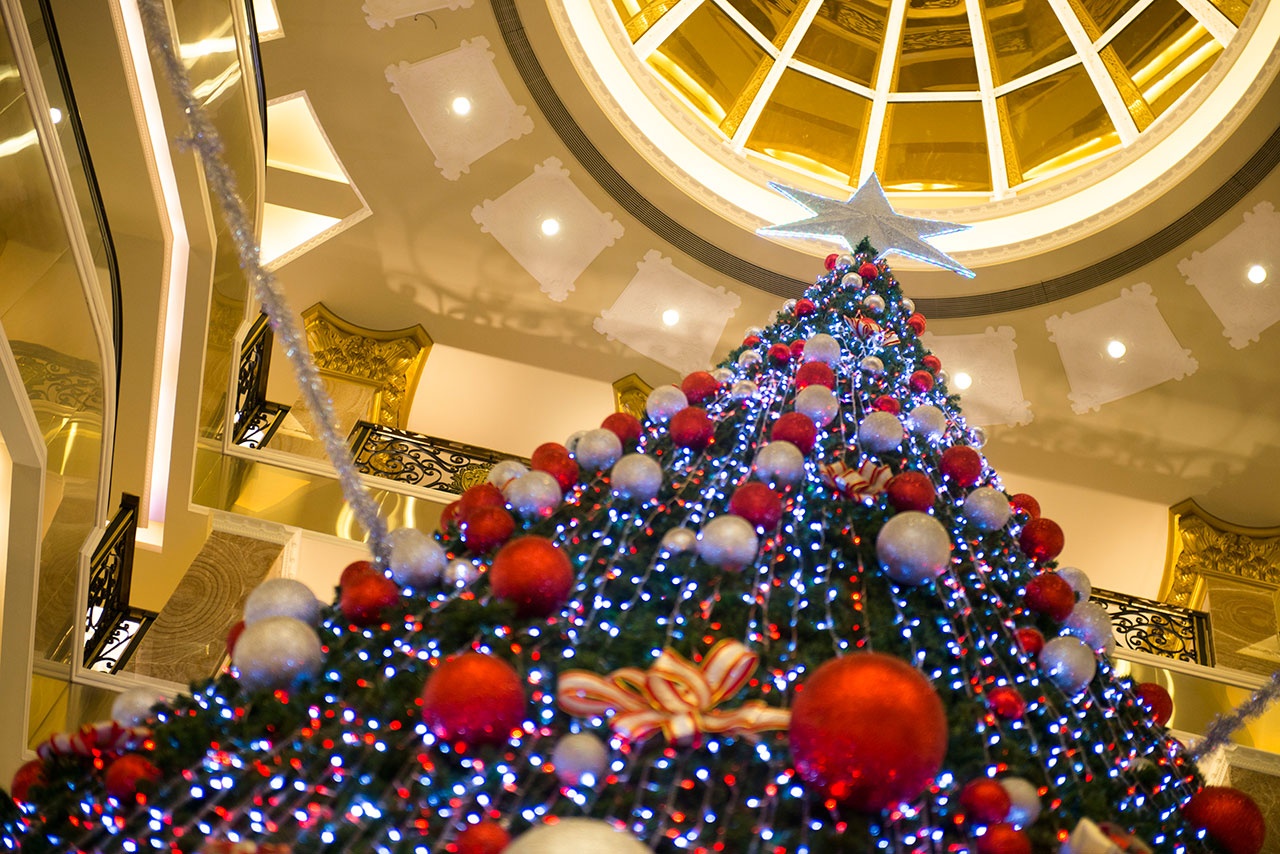 | Cây được trang trí với gần 100.000 đèn led cùng hàng nghìn phụ kiện. |
