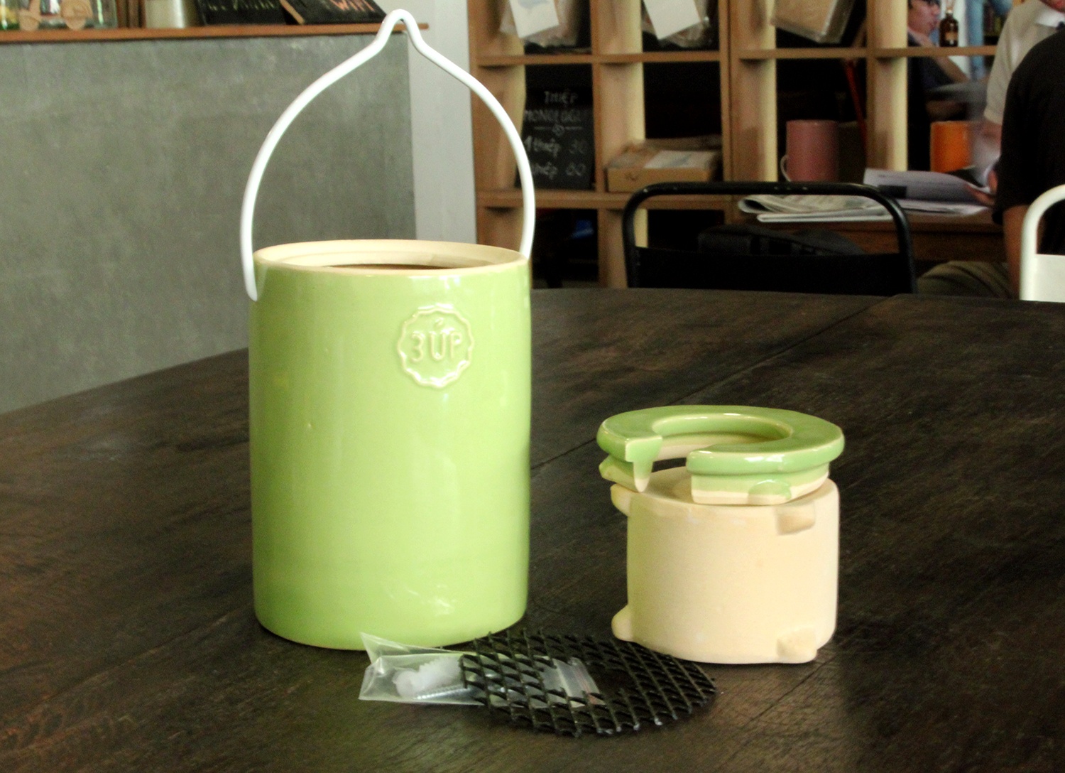 Một chậu úp ngược bao gồm thân chậu bằng sứ nhiều màu khác nhau có quai treo, một bầu nước bằng sứ thẩm thấu, một lưới ngăn đất và một nắp đậy, với giá bán là 120.000 đồng chưa bao gồm cây. Theo các đơn vị kinh doanh loại hình này, nếu khách hàng yêu cầu trồng cả cây thì giá cũng chỉ quanh mức 180.000 đến 230.000 đồng/chậu.