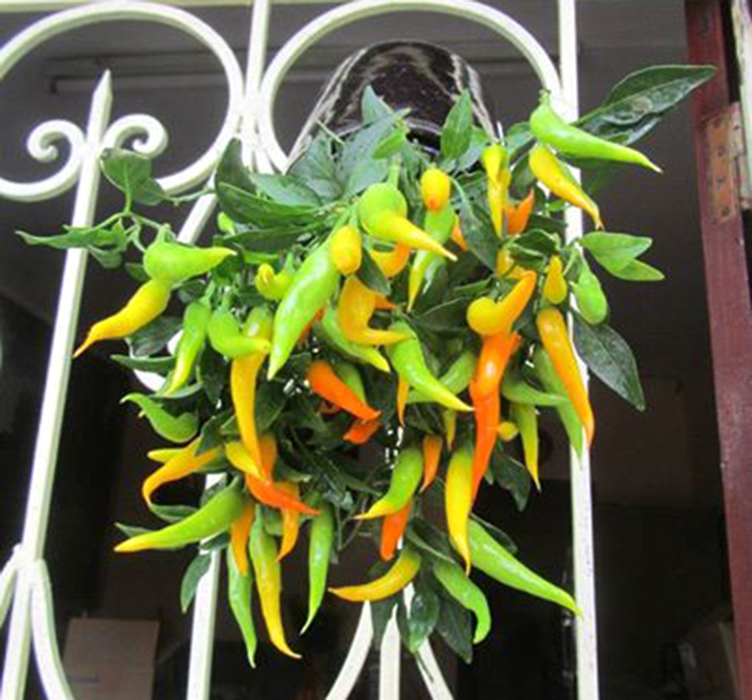 | Một chậu ớt độc đáo "treo lủng lẳng" bên cửa sổ. Ảnh: 3Up |
