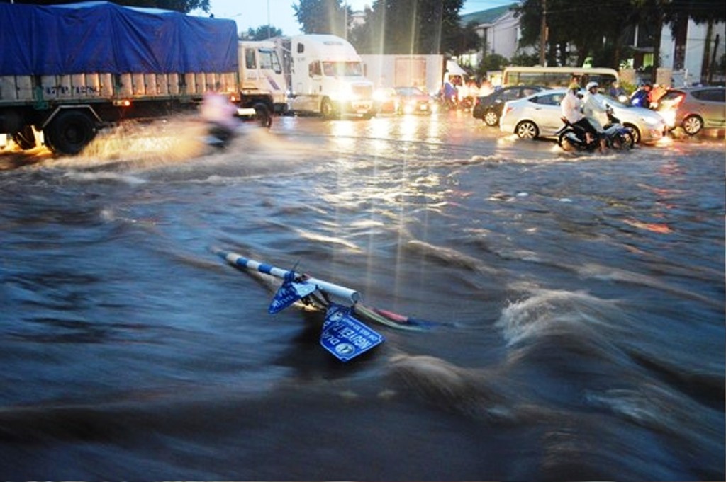 | Mưa lớn cũng đã làm cho đường Nguyễn Tất Thành, trục đường nhiều xe cộ nhất TP.Buôn Ma Thuộc ngập chìm trong nước. Hàng trăm xe máy bị té ngã, nước cuốn trôi, giao thông hỗn loạn. Nhiều người dân đã phải ra đẩy xe cho người đi đường và điều tiết giao thông. |