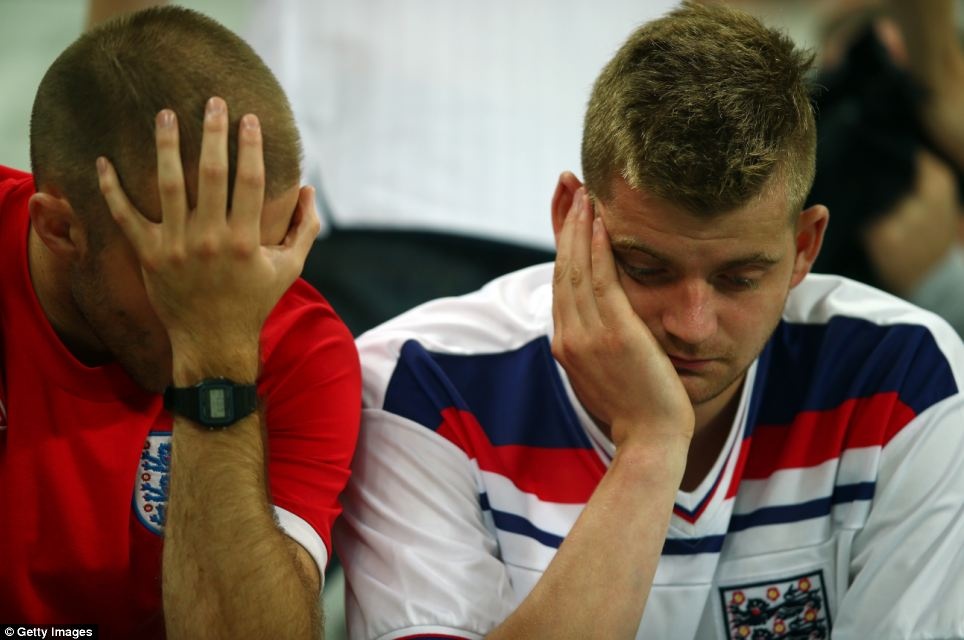 | Hình ảnh CĐV tuyển Anh thất thần sau trận thua 1-2 của thầy trò Roy Hodgson. Tam sư chưa có một điểm nào sau 2 trận thua cùng với tỷ số cách biệt 1 bàn. |
