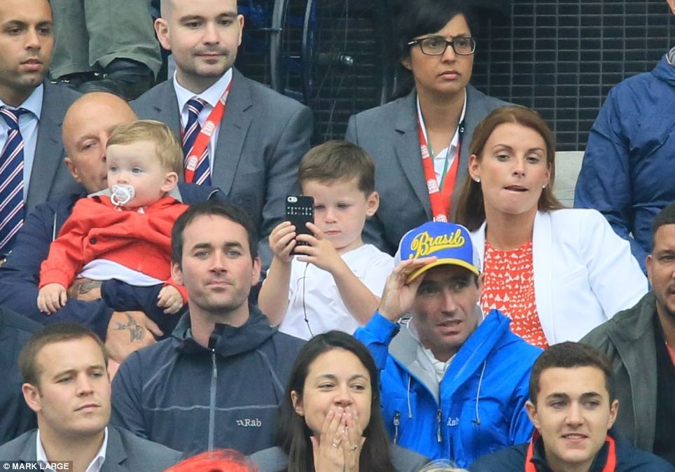 | Hình ảnh bà xã và hai cậu quý tử của Rooney trên khán đài cổ vũ cho ĐT Anh. Dù Ro10 ghi bàn đầu tiên cho Tam sư ở World Cup, nhưng điều đó không thể giúp thầy trò Roy Hodgson có kết quả như mong đợi trước Uruguay. |