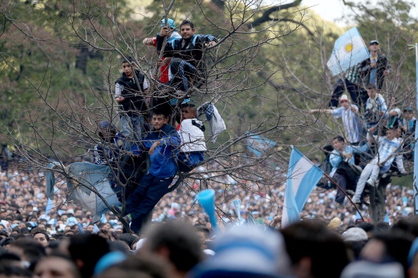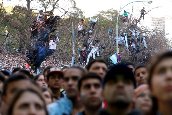 | Hàng chục nghìn người đã đổ dồn về quảng trường Plaza San Martin ở thủ đô Buenos Aires (Argentina) để cổ vũ cho đội bóng con cưng thông qua các màn hình lớn. |