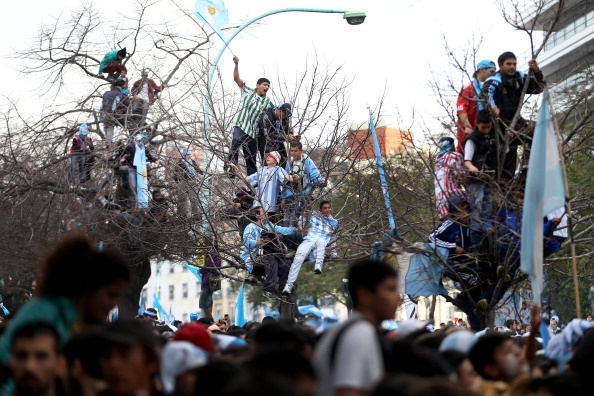 | Họ bất chấp nguy hiểm khi trèo lên những cành cây rất nhỏ để xem Messi và đồng đội thi đấu một cách rõ nét. |
