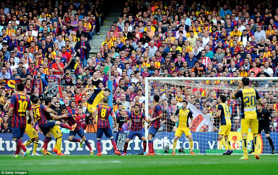 | Bàn thắng của Diego Godin giúp Atletico có trận hòa 1-1 trước Barca ngay trên sân Nou Camp. |