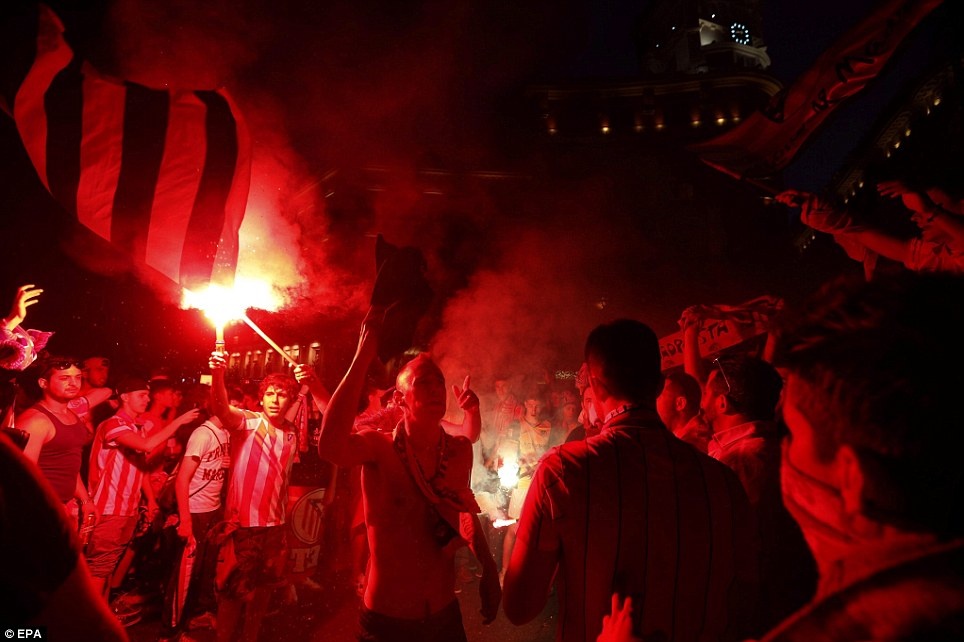 | Một đêm không ngủ của CĐV Atletico Madrid. |