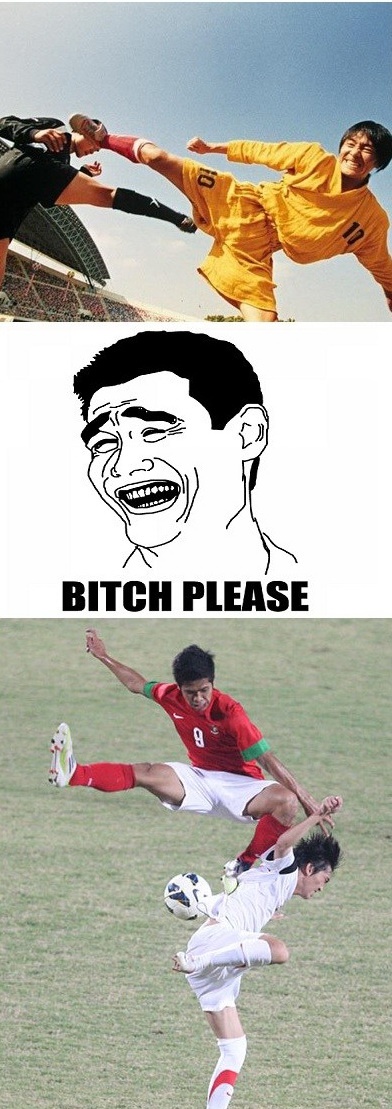 | Cổ động viên Việt Nam so sánh U19 Indonesia với đội bóng thiếu lâm của Châu Tinh Trì, ngụ ý U19 Indonesia mới là đội bóng thiếu lâm thực sự, lấy võ đá bóng. |