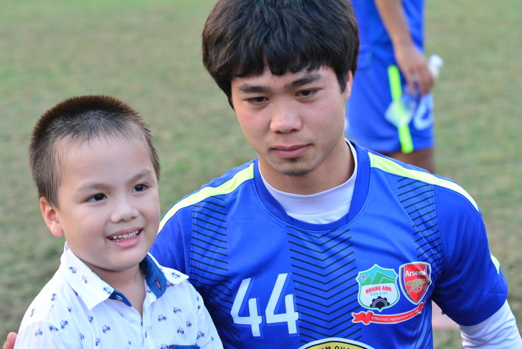 | Khi kết thúc buổi tập luyện, lập tức Công Phượng bị các fan nhỏ tuổi vây kín. Cầu thủ của HAGL không ngại tạo dáng, chụp ảnh cùng fan. |