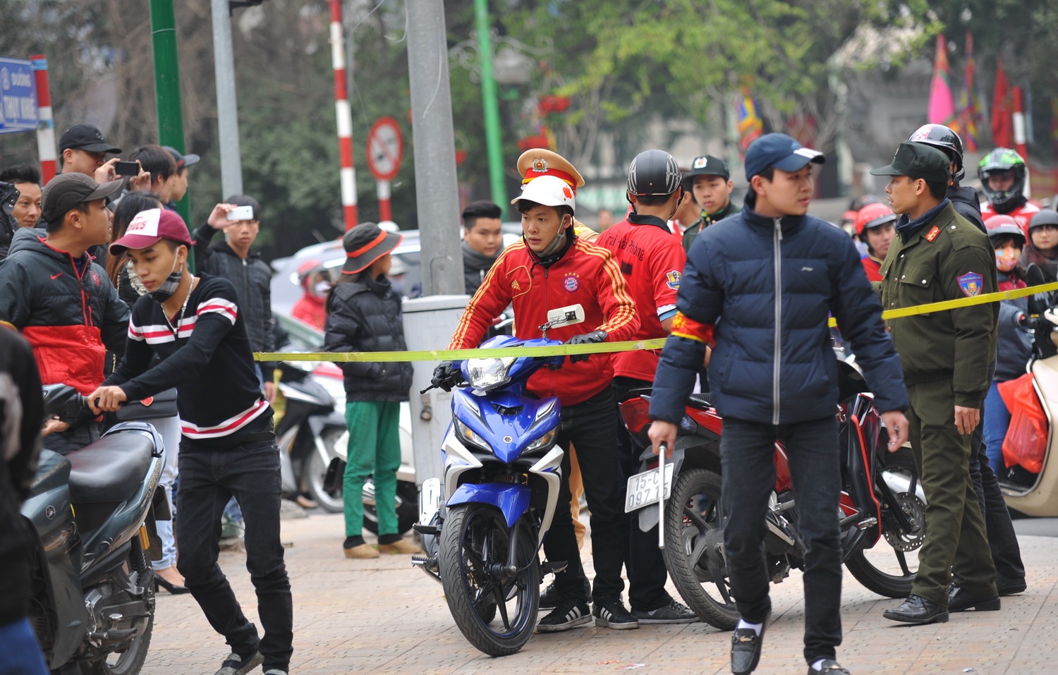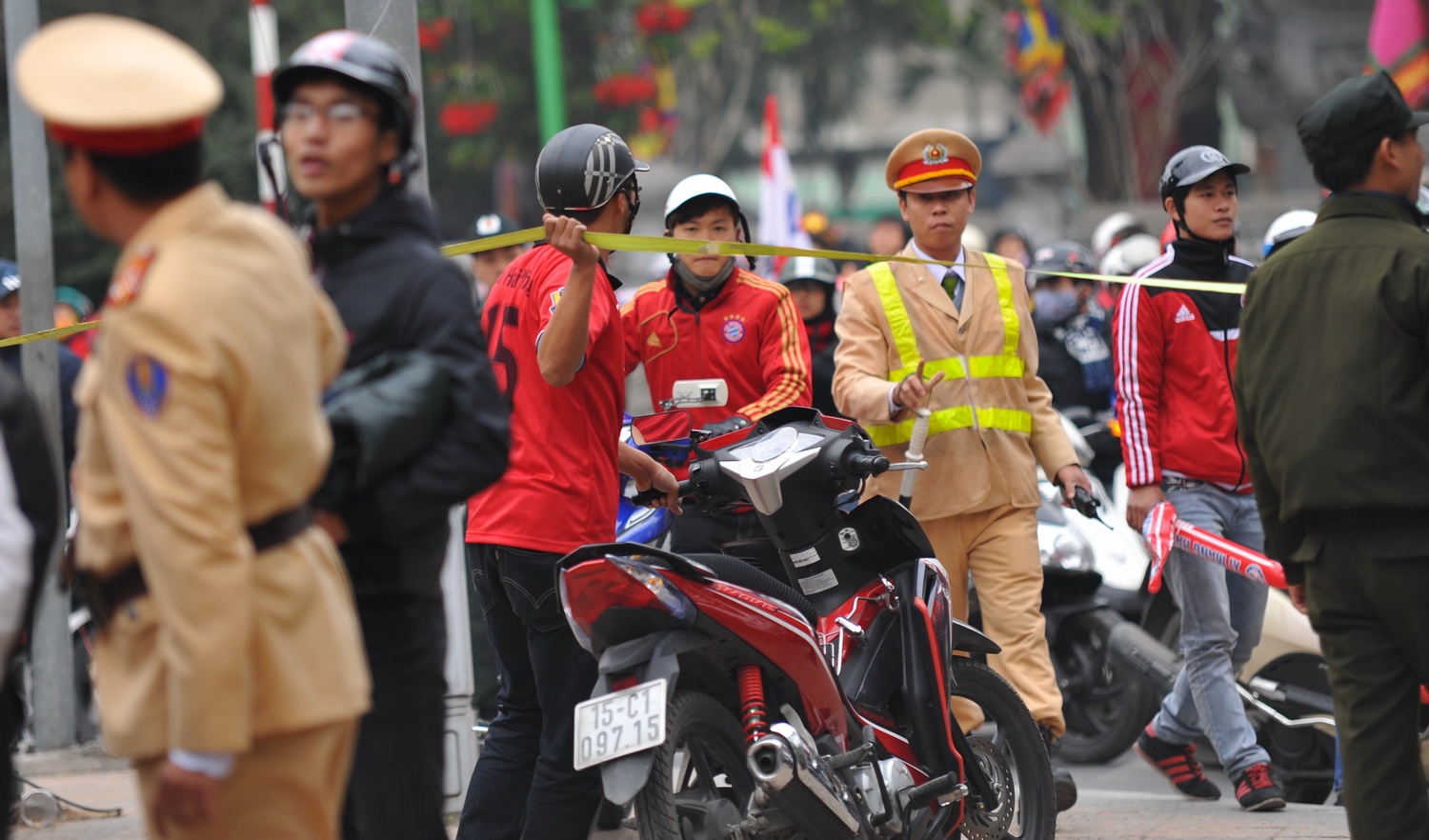 | Sau khi kiểm tra đầy đủ giấy tờ, các CĐV Hải Phòng được tiếp tục diễu hành tới SVĐ Hàng Đẫy. |