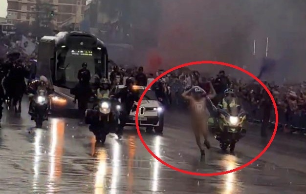 Theo ghi truyền thông Tây Ban Nha, một người đàn ông khỏa thân bất ngờ lao ra đường, chạy cắt ngang đầu xe buýt chở đội bóng Hoàng gia. Lực lượng an ninh lập tức truy đuổi, thậm chí có tình huống cảnh sát tung cú đá nhằm khống chế kẻ quá khích. Sự việc khiến chiếc xe di chuyển chậm trong vòng vây bảo vệ nghiêm ngặt.