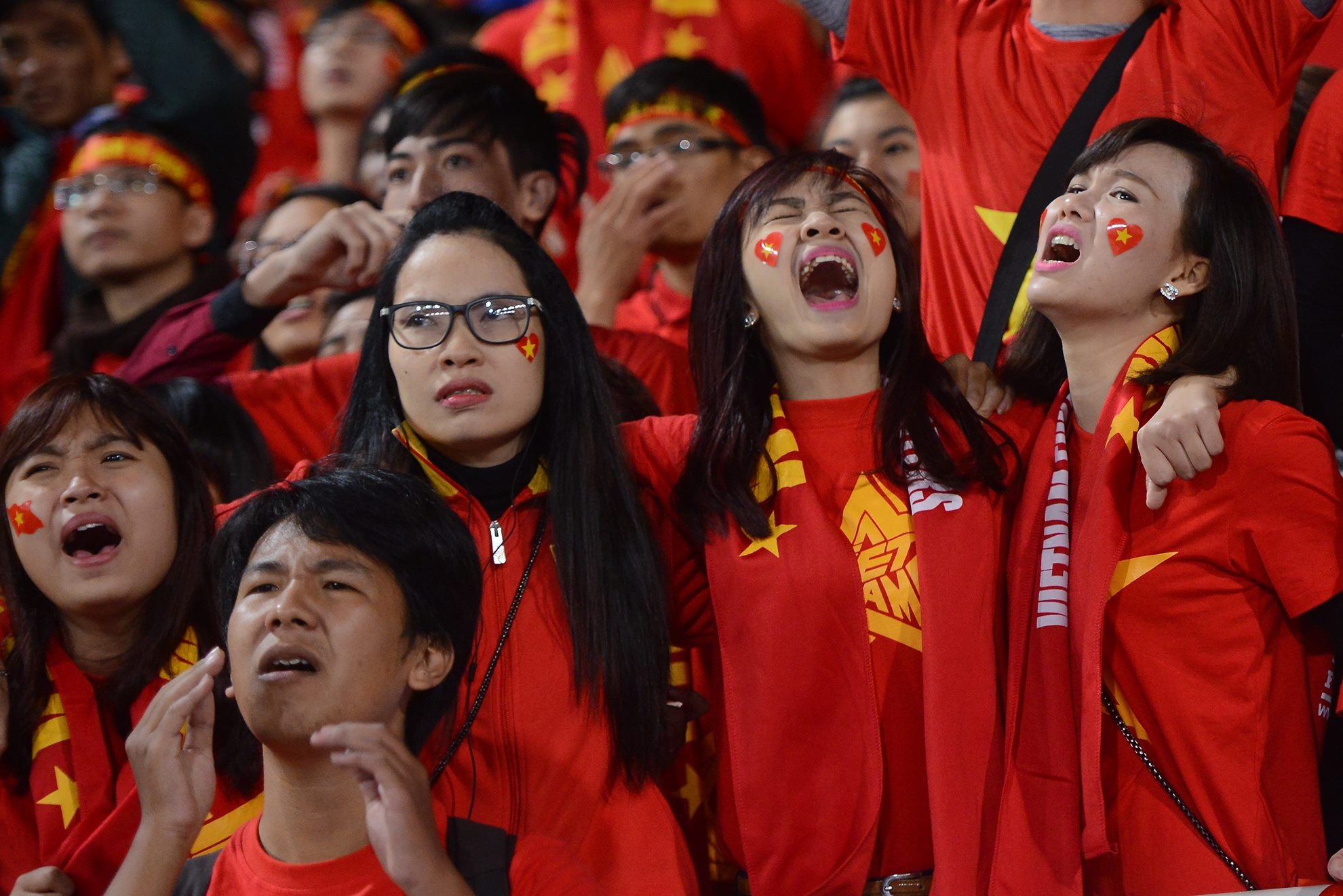 | Fan nữ khóc nức nở sau khi ĐTVN chính thức bị loại khỏi AFF Cup 2014 với thất bại chung cuộc 4-5 trước Malaysia sau 2 lượt trận bán kết. |