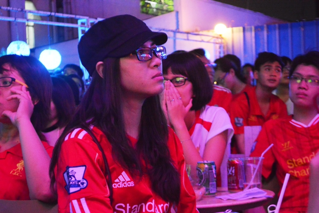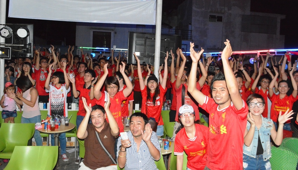 | CĐV Liverpool tại TP.HCM chuẩn bị rất kỹ để xem trận đấu quan trọng với Man City. Họ liên tục hát vang ca khúc truyền thống của đội bóng để cổ vũ Quỷ đỏ vùng Merseyside trong suốt trận đấu. |