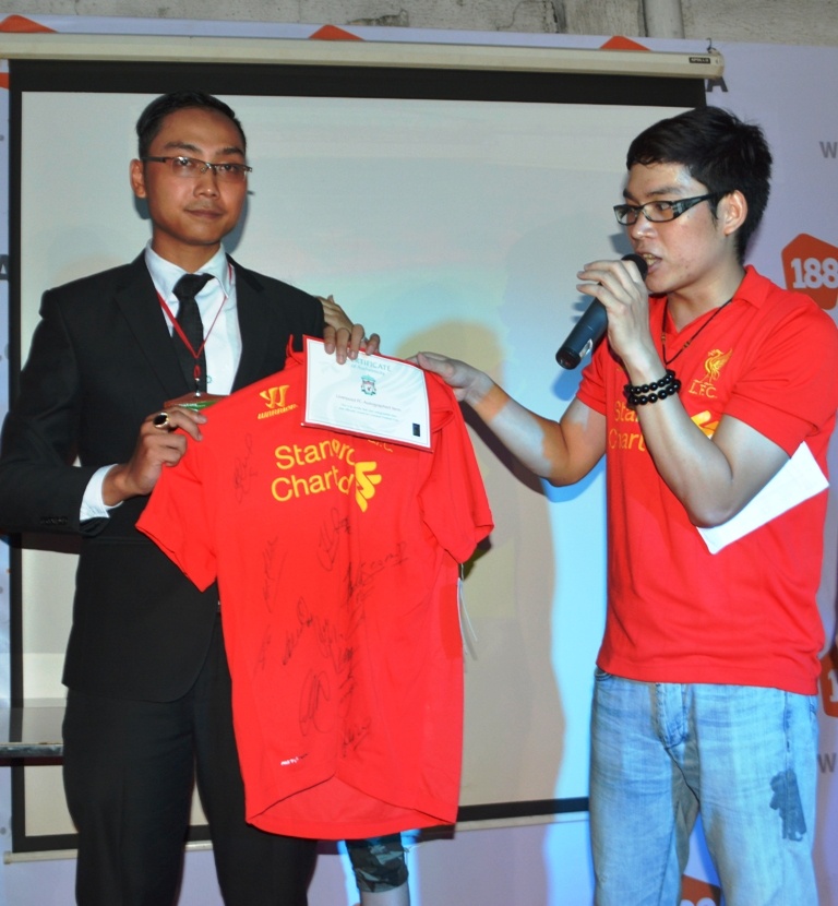 | Chiếc áo đấu có chữ ký của các cầu thủ Liverpool được đấu giá 10 triệu đồng. Tại Hà Nội, 1 quả bóng có chữ ký cũng được đấu giá 4,5 triệu. Tất cả số tiền sẽ được dùng làm từ thiện như xây dựng trường học, đi thăm các trung tâm bảo trợ xã hội... Đây là hoạt động truyền thống của CĐV Liverpool tại Việt Nam. |