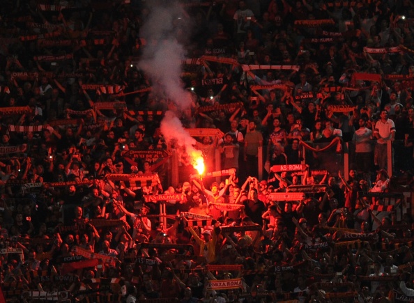 Các CĐV Roma đốt pháo sáng ăn mừng chiến thắng của đội chủ nhà.