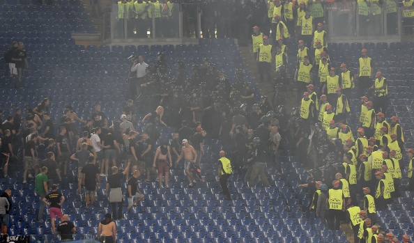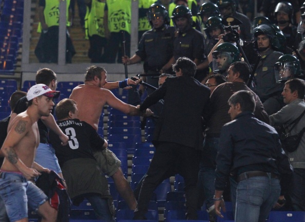 | Màn hỗn chiến xảy ra trên khán đài Olimpico khá lâu. |