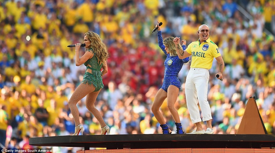 Nữ ca sĩ bốc lửa của nước chủ nhà Claudia Leitte góp phần tạo nên sự thành công của lễ khai mạc World Cup.